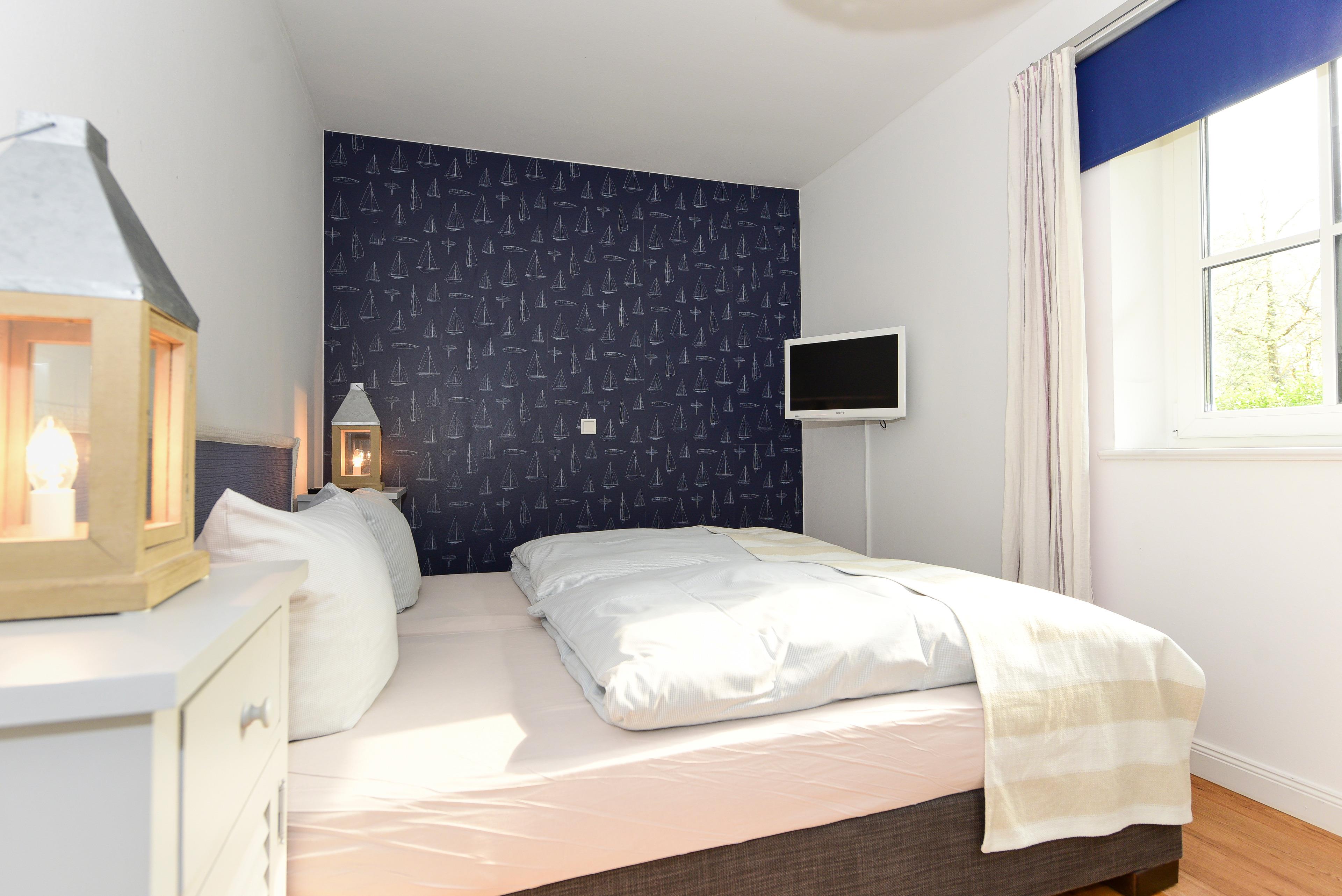 Zwei der vier Schlafzimmer befinden sich im Erdgeschoss: eines mit einem komfortablen Doppelbett und das andere mit zwei Einzelbetten.