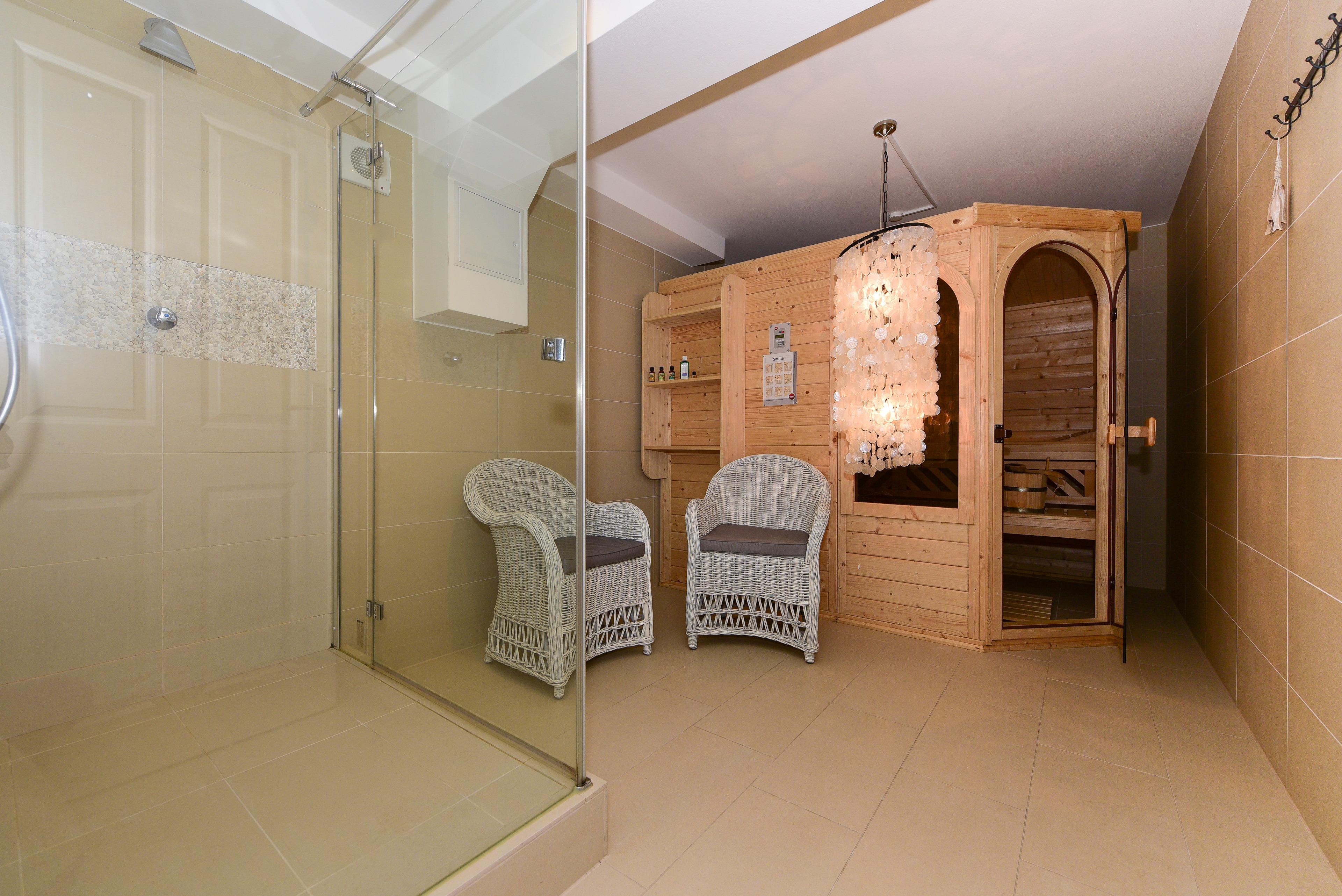 Ihre private Wellness-Oase mit Sauna, Ruheliege und einer weiteren Regendusche im Souterrain rundet das Erlebnis ab – der ideale Ort, um den Alltagsstress hinter sich zu lassen.