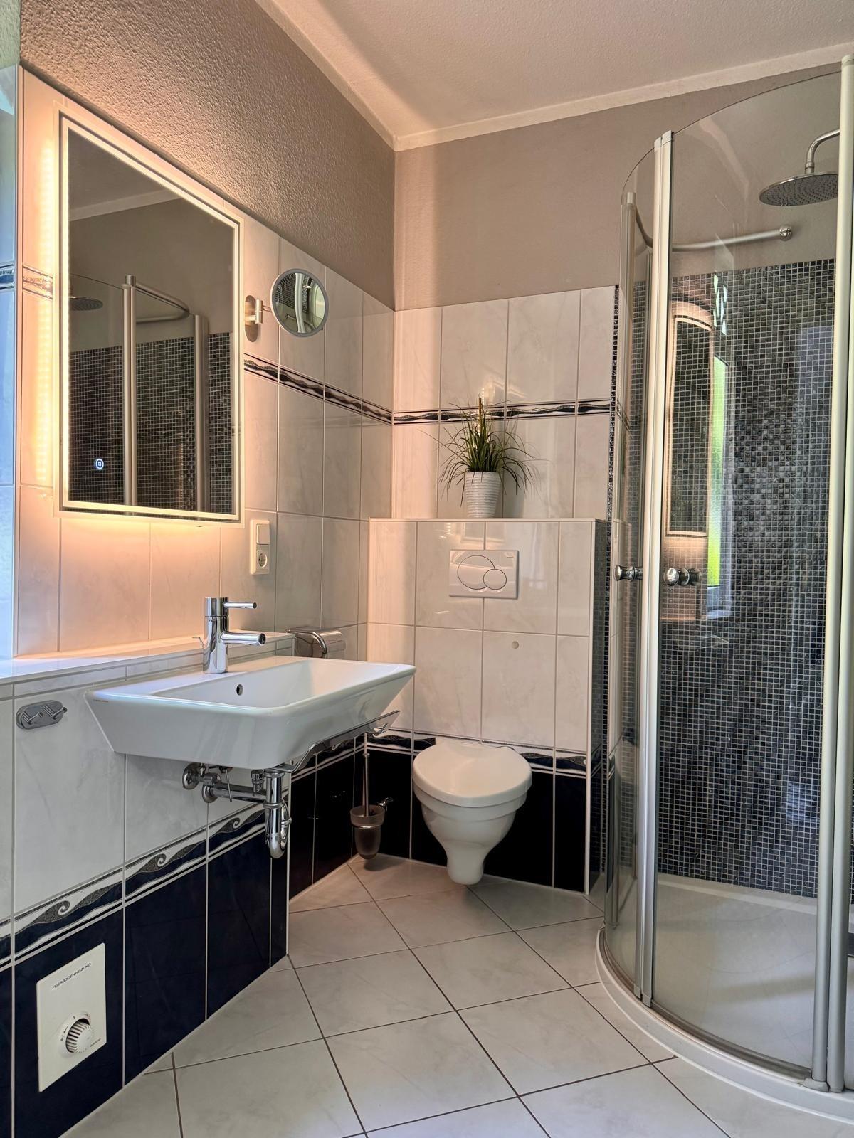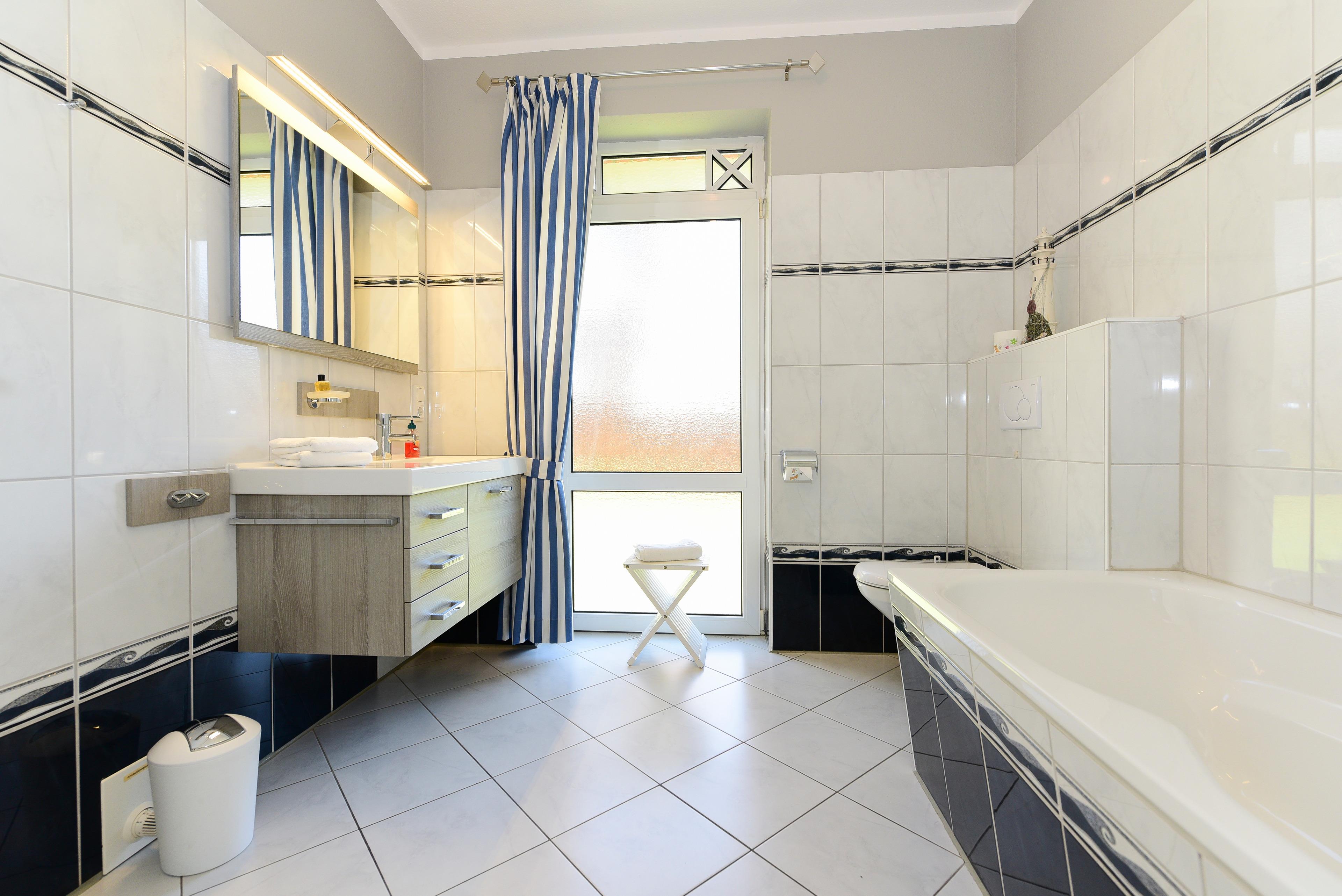 Im Erdgeschoss erwarten Sie drei komfortable Schlafzimmer. Zwei davon sind mit großen, bequemen Doppelbetten ausgestattet, während das dritte Schlafzimmer zwei gemütliche Einzelkojen bietet. Eines der Schlafzimmer verfügt über einen Smart-TV, den Sie für Streaming-Dienste nutzen können (mit WLAN). Ebenfalls im Erdgeschoss finden Sie zwei moderne Badezimmer – eines mit Dusche und Badewanne, das andere mit einer Dusche.