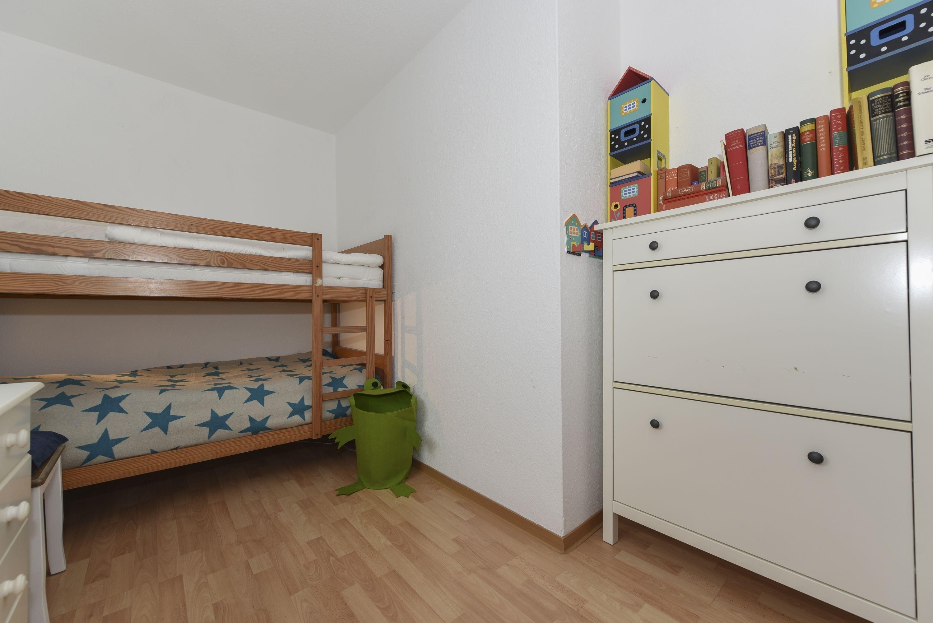 Im Elternschlafzimmer erwartet Sie ein gemütliches Doppelbett, während das Kinderzimmer mit einem Etagenbett ausgestattet ist.
