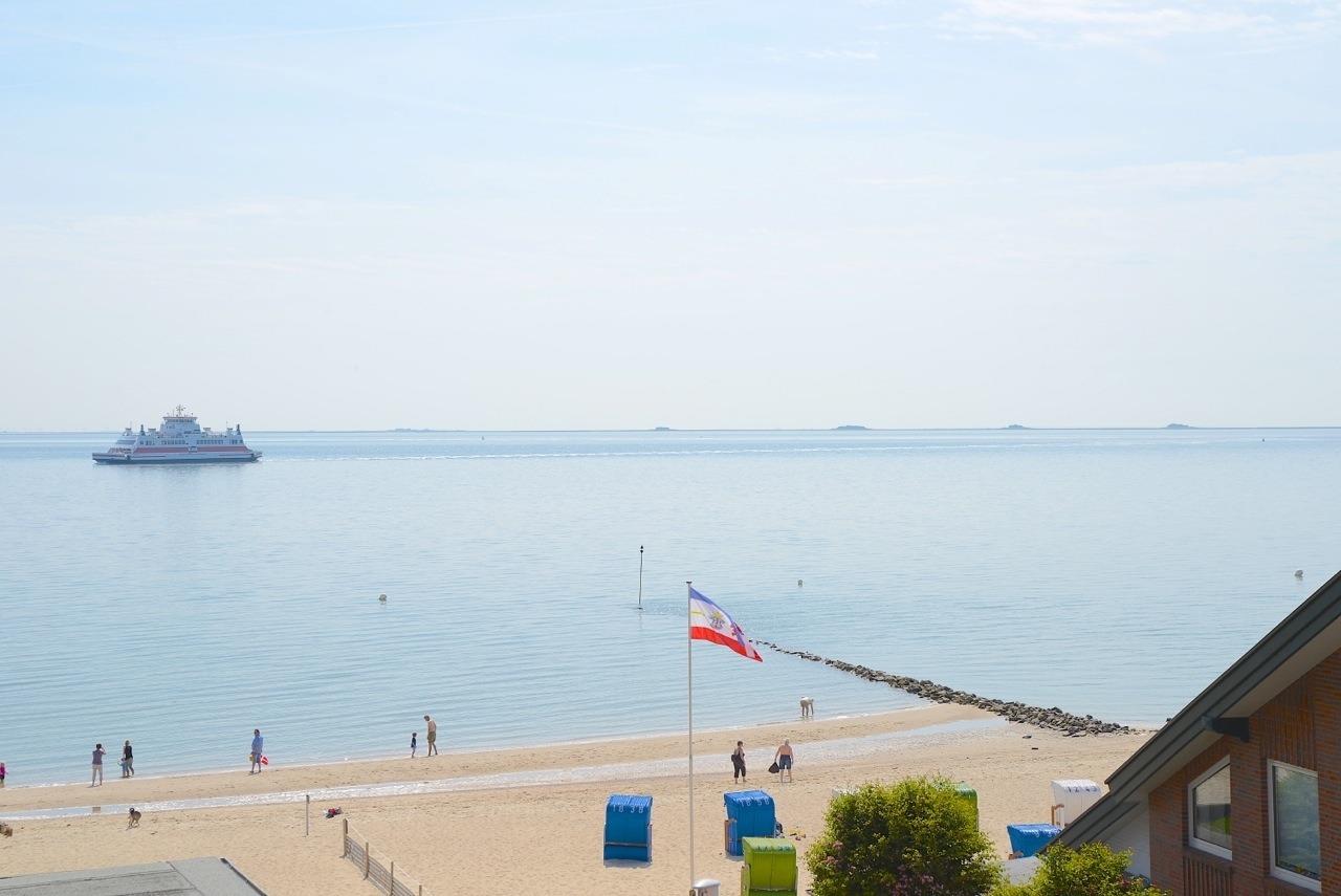 Unsere stilvolle Wohnung im "Fiete Deppe Hus" mit traumhaftem Meerblick erwartet Sie im Herzen von Wyk, direkt am Beginn der Strandpromenade.