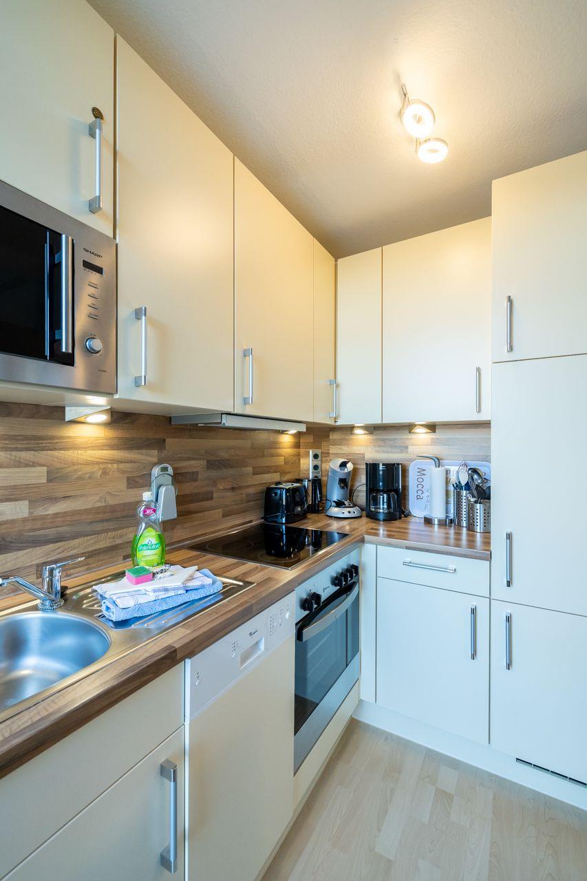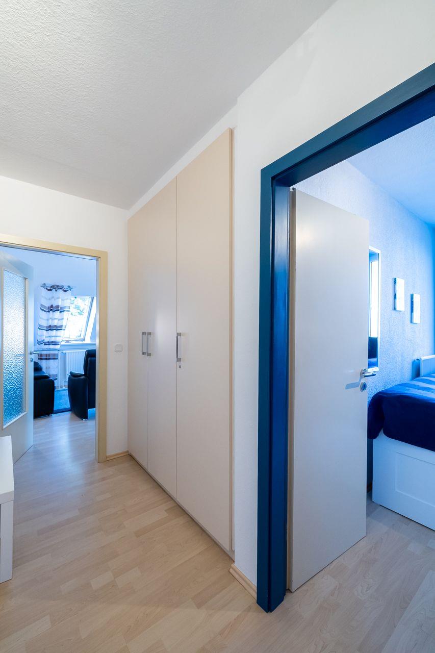 Diese gemütliche Wohnung befindet sich in der 1. Etage eines Mehrfamilienhauses und erstreckt sich über zwei Etagen am beliebten Südstrand in Wyk auf Föhr. Sie ist für ein bis fünf Personen geeignet. Es erwartet Sie ein mit viel Liebe eingerichtetes Feriendomizil. Auf ca.57 qm stehen Ihnen ein kleiner Flur mit Garderobe, ein Schlafzimmer mit einem Einzelbett und einem Tandembett (in diesem Zimmer befindet sich ein 2. Fernseher), ein Galerieschlafzimmer mit Doppelbett (180x200) in der 2. Etage, ein Duschbad, eine offene Küche mit kombiniertem Wohn-Essbereich zur Verfügung. Der Wohnbereich ist sehr liebevoll mit zwei gemütlichen Sofas, SAT-TV und Blue Ray-Player ausgestattet. In der Küche finden Sie unter anderem: Geschirrspülmaschine, Kaffeemaschine, Toaster , Wasserkocher, Cerankochfeld, Mikrowelle und einen Kühlschrank mit Gefrierfach. Ein Strandkorb inklusive Strandlaken von Mai bis September am Wyker Strand (Abschnitt 23) befindet sich kaum 5 Gehminuten von der Wohnung entfernt.