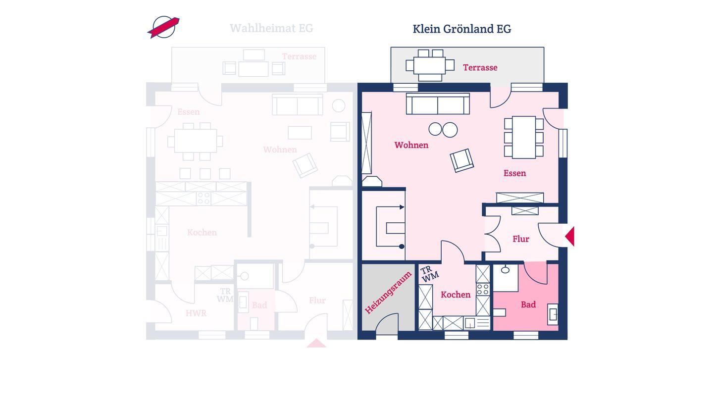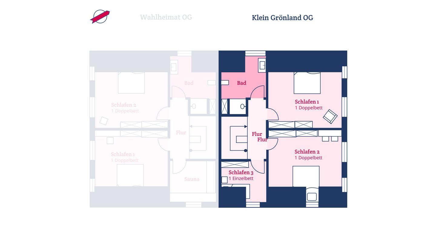 Die hochwertige Doppelhaushälfte "Klein Grönland", welche im Jahr 2020 neu errichtet wurde, verfügt über drei Schlafzimmer und zwei Bäder und bietet 5 Personen zuzüglich einer Kleinkinderaufbettung komfortabel Platz.