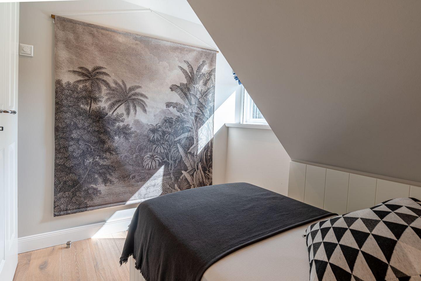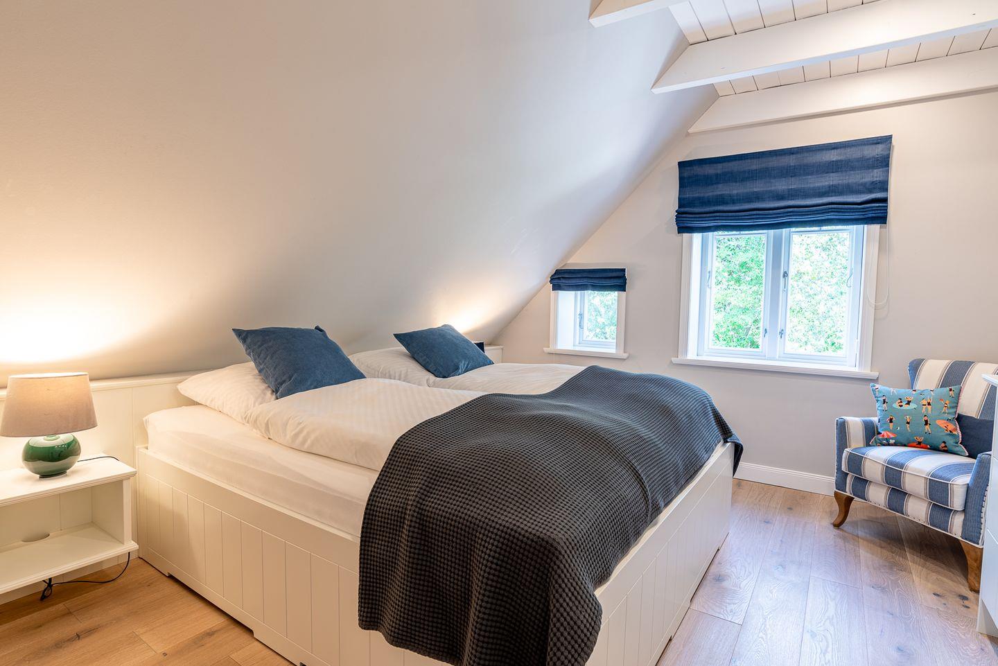 Im Obergeschoss befinden sich die zwei Schlafzimmer mit Doppelbett sowie ein weiteres Duschbad. In allen Schlafzimmern steht Ihnen ein Fernseher zur Verfügung. Die Doppelbettzimmer verfügen zudem über zusätzliche Sitzgelegenheiten. Das Obergeschoss verfügt außerdem über ein gemütliches Zimmer mit Dachgaube, das als zusätzliche Schlafgelegenheit mit einem Einzelbett ausgestattet wurde.