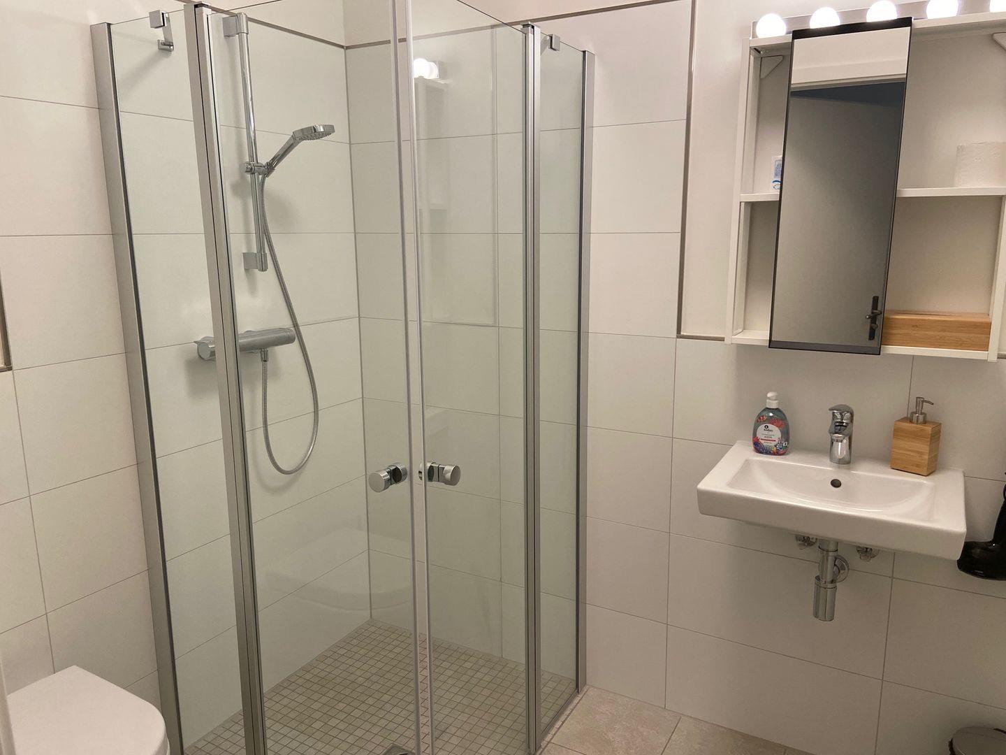 Das helle Duschbad ist modern gestaltet und verfügt über eine ebenerdige Dusche, die für barrierefreies Duschen sorgt. Selbstverständlich sind auch ein Flachbildfernseher und ein Internetzugang vorhanden.