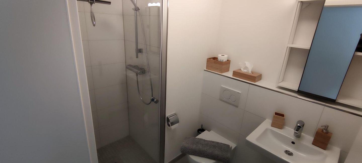 In den beiden Schlafzimmern finden bis zu 4 Personen bequem Platz. Das eine Schlafzimmer ist mit einem gemütlichen Doppelbett (180*200) ausgestattet, während das andere Schlafzimmer über ein Etagenbett (2*90*200) verfügt. Das Duschbad ist hell und modern gestaltet und verfügt über eine ebenerdige Dusche, die für barrierefreies Duschen sorgt.