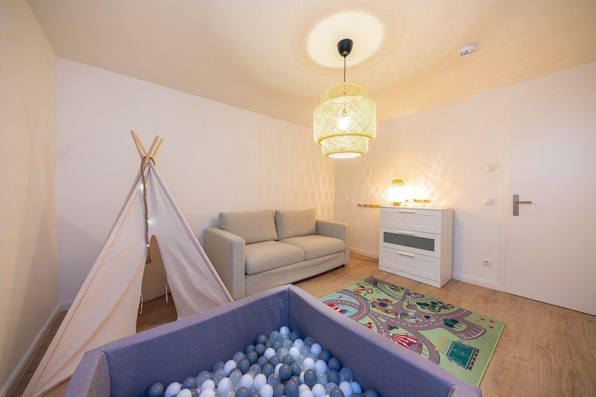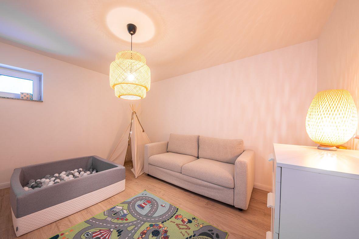 Eine Treppe führt Sie ins Souterrain, wo sich zwei Schlafzimmer, ein Spielzimmer und ein modernes Duschbad befinden. Die ersten beiden Schlafzimmer verfügen über ein Doppelbett (180*200), die anderen beiden Schlafzimmer über eine Ausziehcouch (140*200). Hier können Sie sich nach einem langen Tag auf der Insel entspannen und die Seele baumeln lassen.