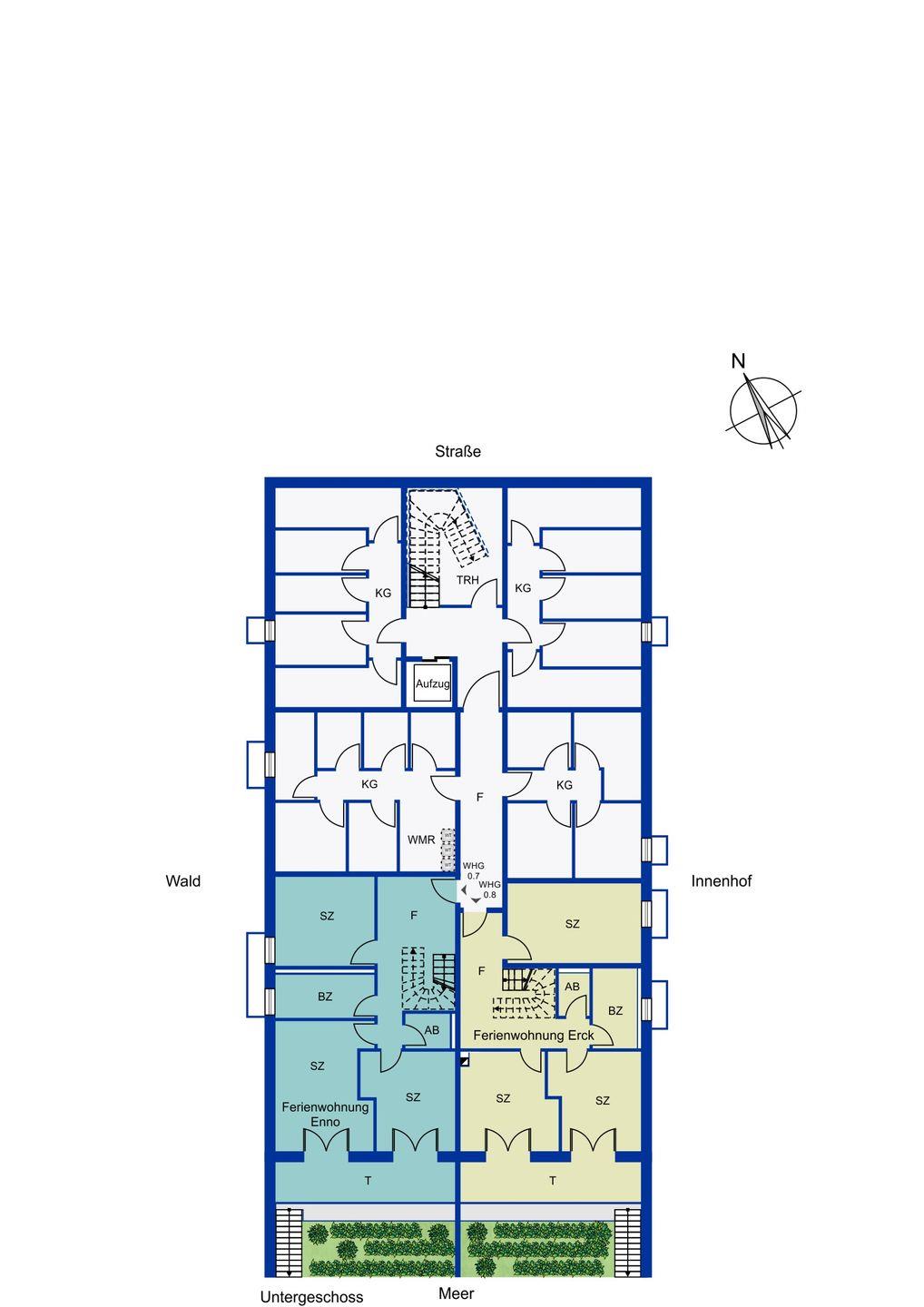 Die Ferienwohnung Enno auf dem Gelände am Golfplatz 9b in Wyk auf Föhr bietet alles, was das Herz begehrt. Mit insgesamt 20 Ferienwohnungen und einigen fest vermieteten Wohnungen befindet sich die Ferienwohnung im Herzen von Föhr auf einem 1,03 ha großen, grünen Gelände. Hier kommen Feriengäste und Insulaner zusammen und genießen gemeinsam die entspannte Atmosphäre. Die Erdgeschosswohnung (mit Souterrain) erstreckt sich über zwei Etagen und bietet auf insgesamt 139 m² Platz für bis zu 8 Personen (8 Personen und 4 Babys).