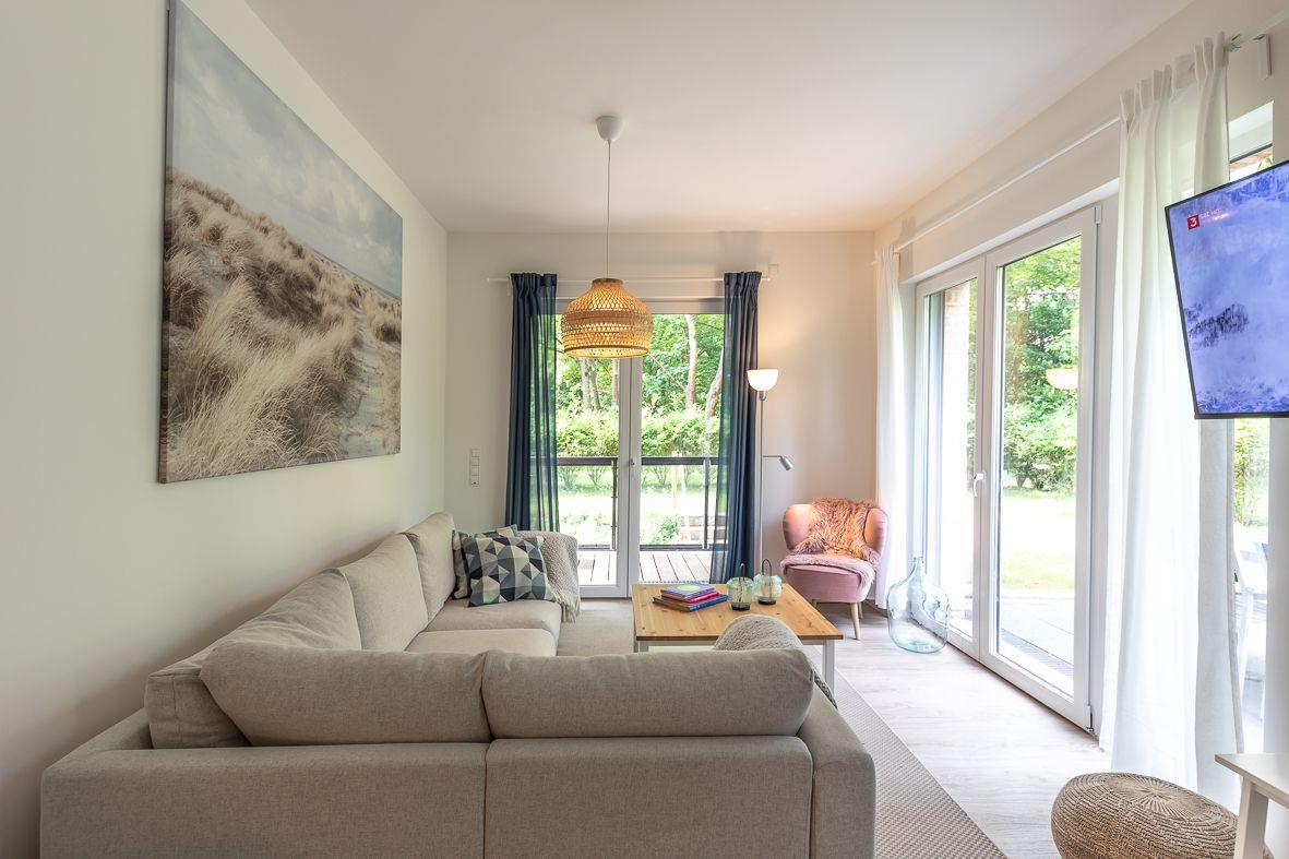 Die helle Ferienwohnung Enno befindet sich ebenerdig in einem modernen Gebäudekomplex auf einem 1,03h großen, grünen Gelände und lädt zu erholsamen Urlauben ein – perfekt für Paare, Freunde oder die Familie. Sie ist liebevoll skandinavisch eingerichtet und bietet auf 139 m² reichlich Platz für bis zu 8 Pers. Kurze Wege zum Strand, zur Promenade und zu Restaurants machen sie zur idealen Basis für entspannte Tage. Die gemütlichen Terrasse mit kleinem Garten sind schön von einer Hecke eingefriedet.