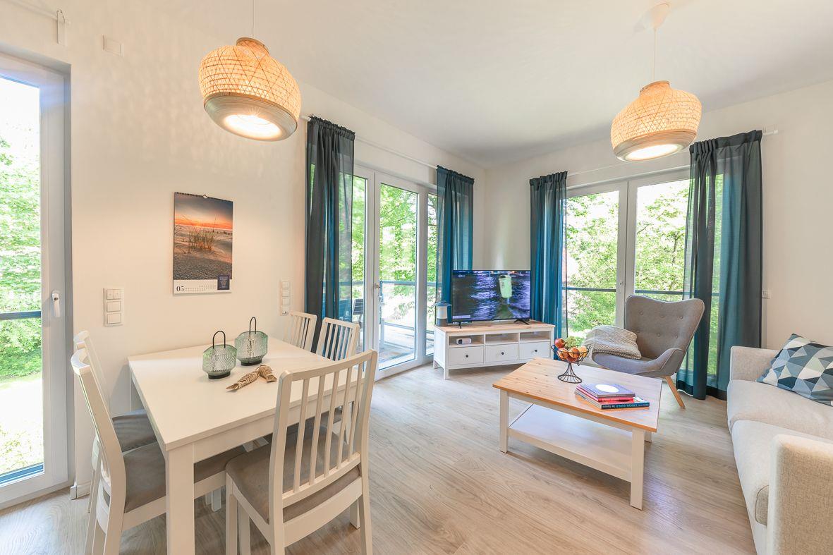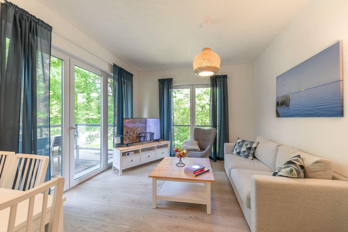 Die barrierearme Ferienwohnung Femmi befindet sich in einem modernen Gebäudekomplex auf einem 1,03h großen, grünen Gelände und lädt zu erholsamen Urlauben ein – perfekt für Paare, Freunde oder die kleine Familie. Sie ist liebevoll skandinavisch eingerichtet und bietet auf 65 m² reichlich Platz für bis zu 4 Personen plus Baby. Kurze Wege zum Strand, zur Promenade und zu Restaurants machen sie zur idealen Basis für entspannte Tage. Der gemütliche Balkon lädt zum Verweilen ein.