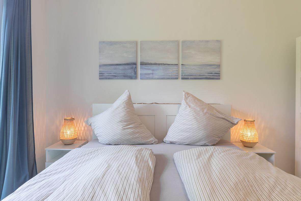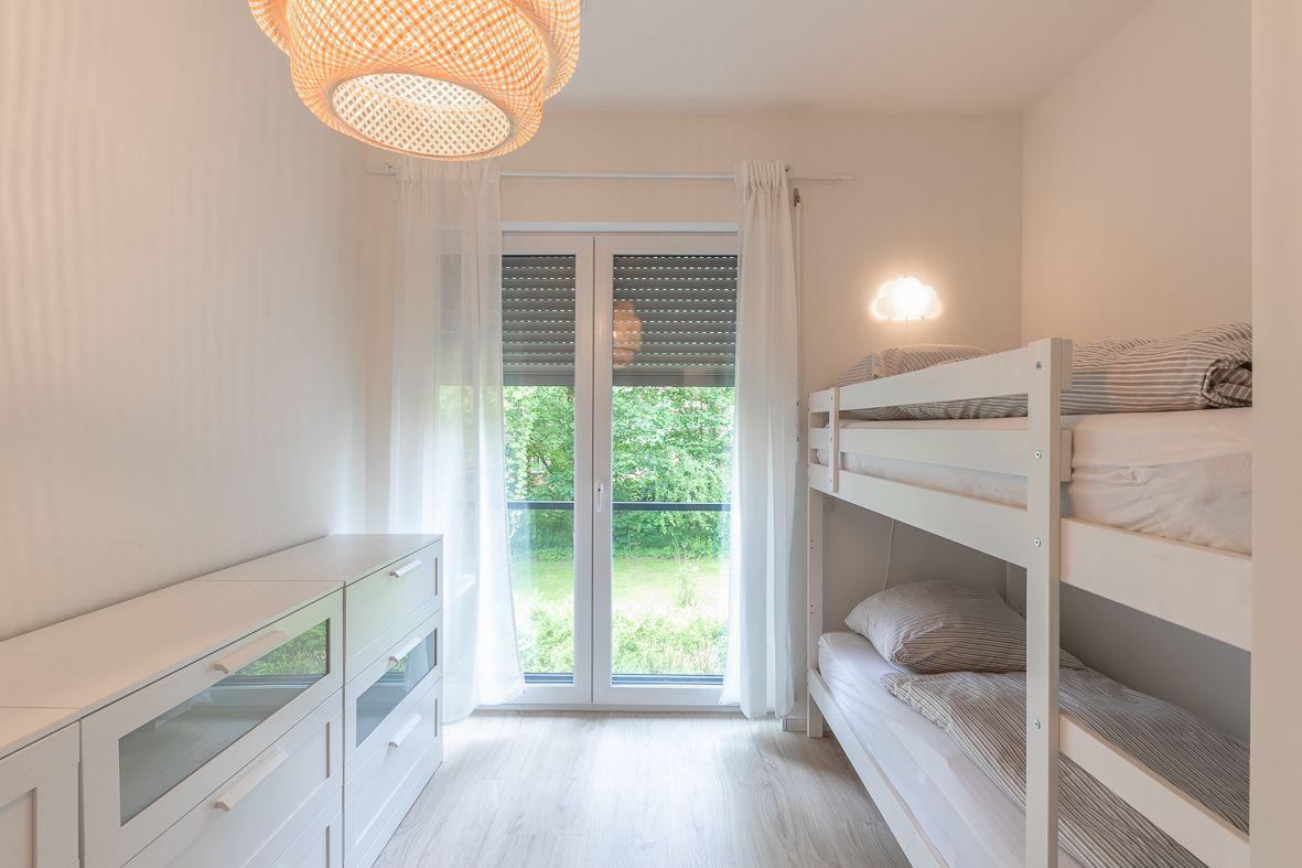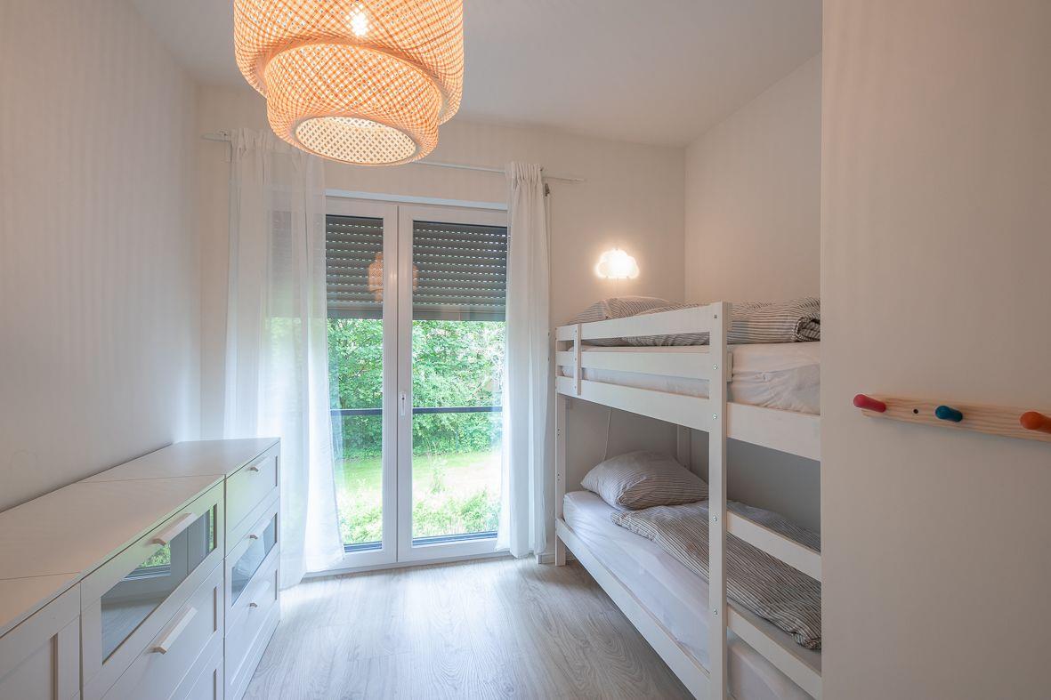 Die beiden Schlafzimmer der Wohnung sind ebenfalls liebevoll eingerichtet und bieten hohen Komfort. Das eine Schlafzimmer verfügt über ein gemütliches Doppelbett (180*200), während das andere Zimmer mit einem praktischen Etagenbett (2*90*200) ausgestattet ist. Das Duschbad ist modern und mit einer ebenerdigen Dusche versehen, um Ihnen ein angenehmes Duscherlebnis zu bieten. Besonders praktisch: In dieser Wohnung steht Ihnen ein eigener Waschtrockner zur Verfügung, damit Sie auch während Ihres Urlaubs Ihre Wäsche waschen können.