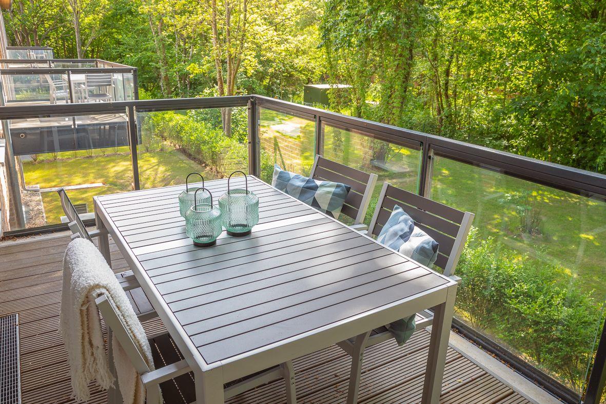 Vom Wohn-Ess-Küchenbereich haben Sie Zugang zu Ihrem sonnigen Balkon nach Westen, auf dem Sie herrlich entspannen und die Sonne genießen können. Das Grundstück, auf dem die Ferienwohnung steht, bietet Ihnen einen barrierefreien Zugang zum 350 m entfernten Strand, wo Sie gemütliche Spaziergänge am Meer unternehmen oder sich im kühlen Nass erfrischen können. Auch die Föhrer Kartbahn "Föhrring" und der Föhrer Flugplatz sind in unmittelbarer Nähe und bieten Ihnen abenteuerliche Aktivitäten.