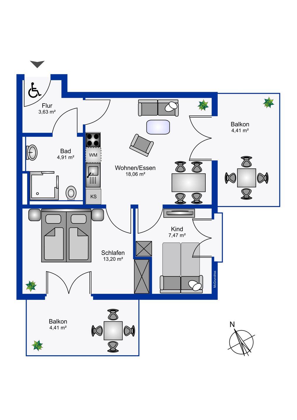 Die barrierearme Ferienwohnung Grietje befindet sich in einem modernen Gebäudekomplex auf einem 1,03h großen, grünen Gelände und lädt zu erholsamen Urlauben ein – perfekt für Paare, Freunde oder die kleine Familie. Sie ist liebevoll skandinavisch eingerichtet und bietet auf 56 m² reichlich Platz für bis zu 4 Personen plus Baby. Kurze Wege zum Strand, zur Promenade und zu Restaurants machen sie zur idealen Basis für entspannte Tage. Die gemütlichen Balkone laden zum Verweilen ein.