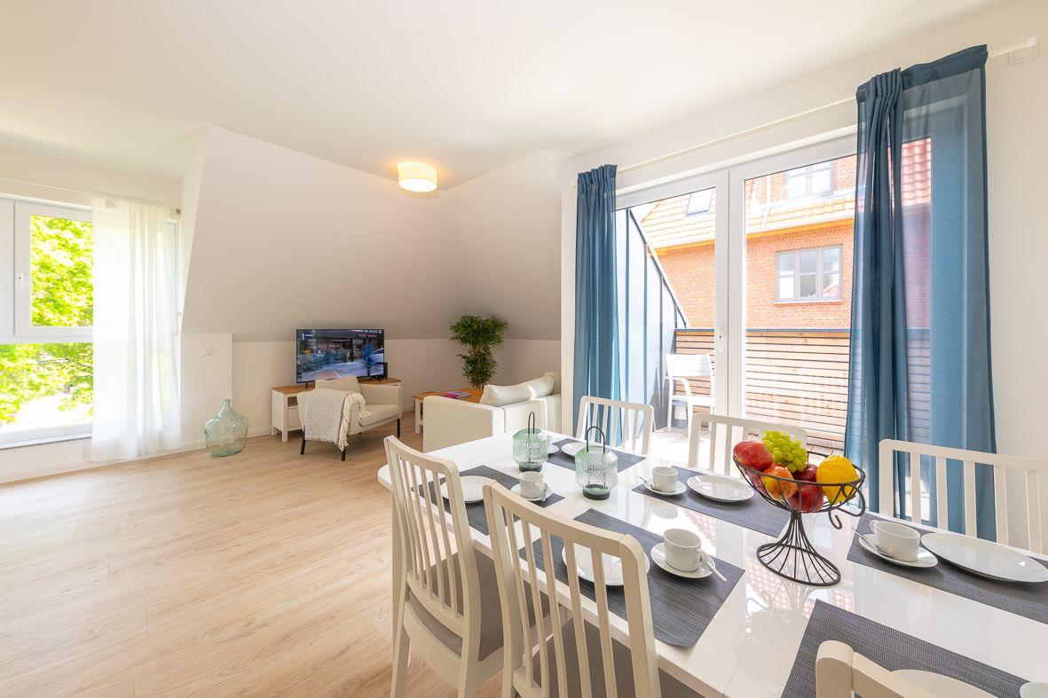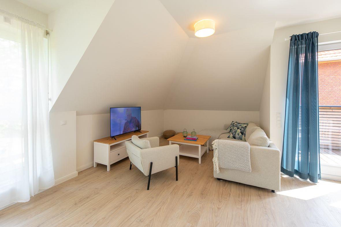 Die helle 2-geschossige Ferienwohnung Tade befindet sich in einem modernen Gebäudekomplex auf einem 1,03h großen, grünen Gelände und lädt zu erholsamen Urlauben ein – perfekt für Paare, Freunde oder die ganze Familie. Sie ist liebevoll skandinavisch eingerichtet und bietet auf 91 m² reichlich Platz für bis zu 6 Personen plus 2 Babys. Kurze Wege zum Strand, zur Promenade und zu Restaurants machen sie zur idealen Basis für entspannte Tage. Die tolle Dachterrasse lädt zum gemeinsamen Verweilen ein.