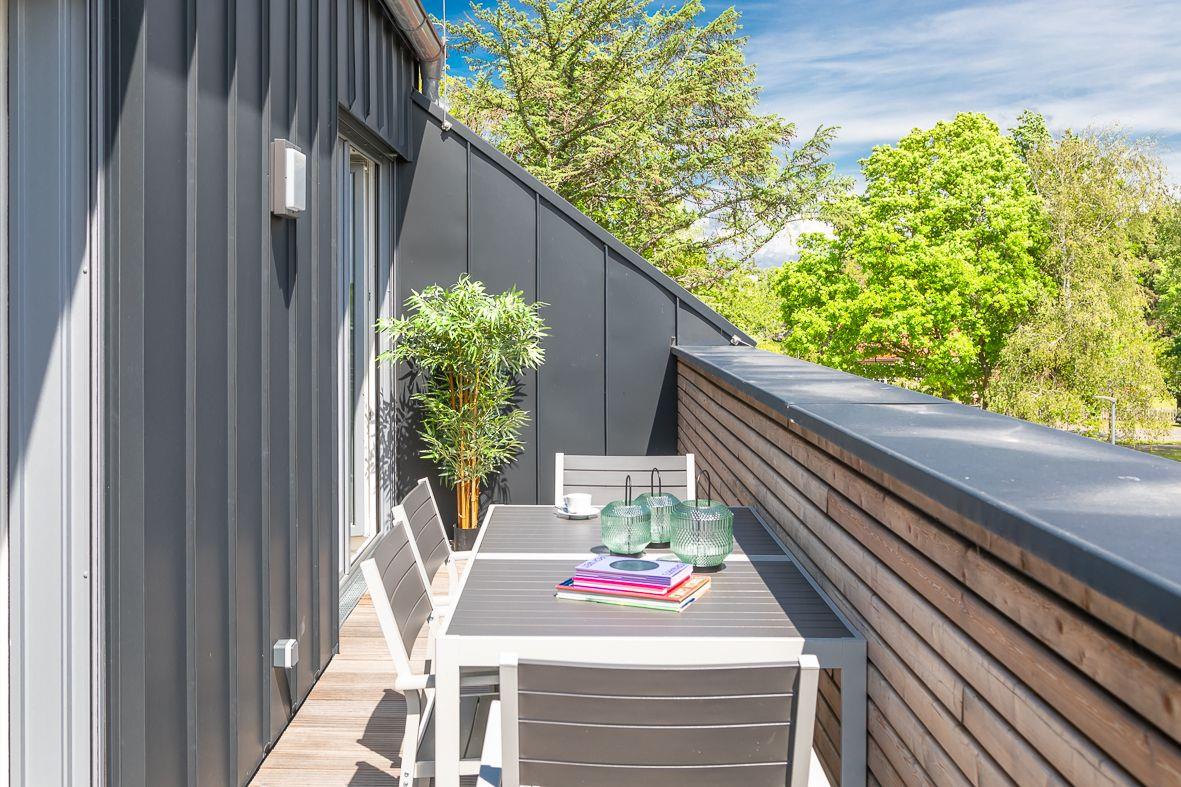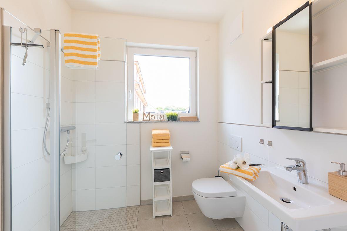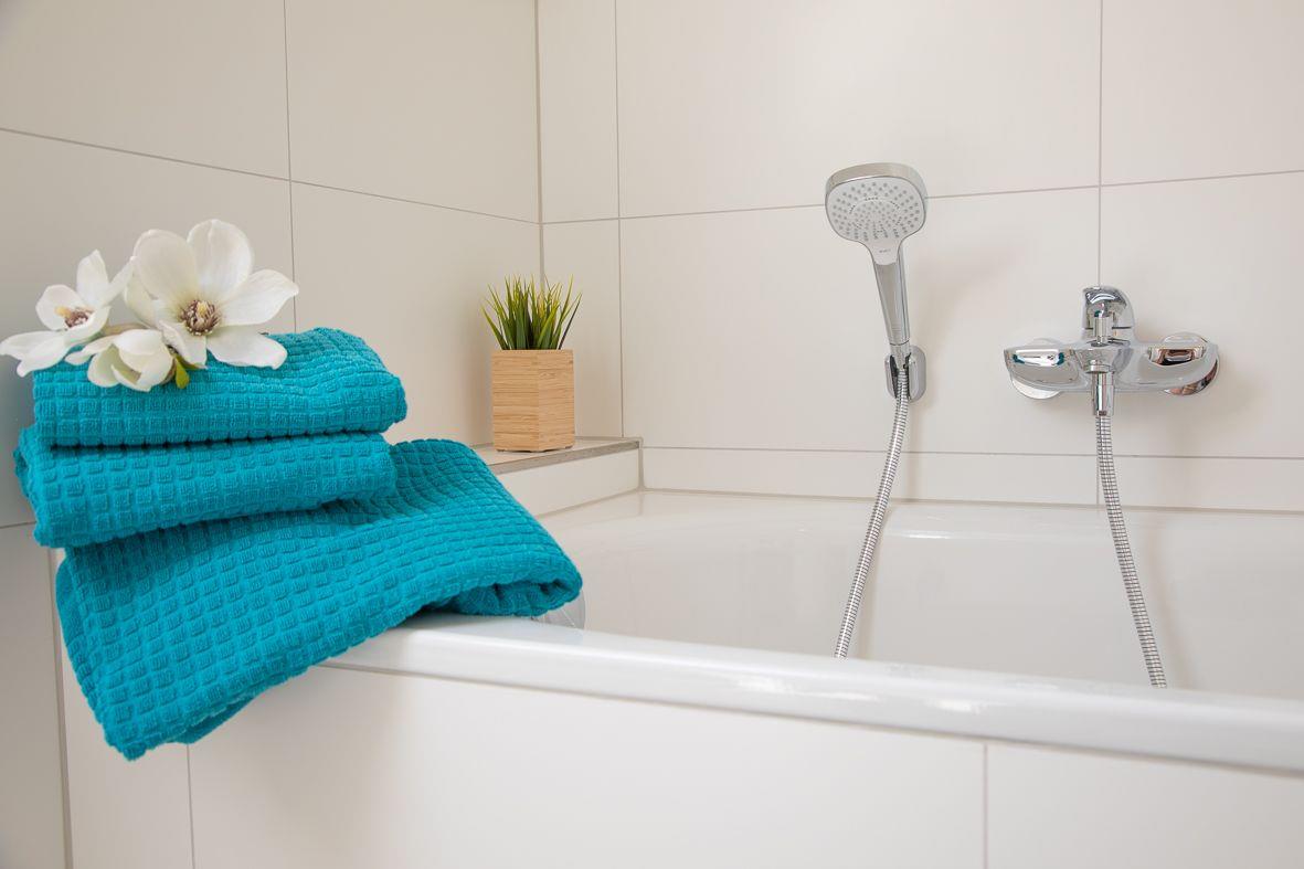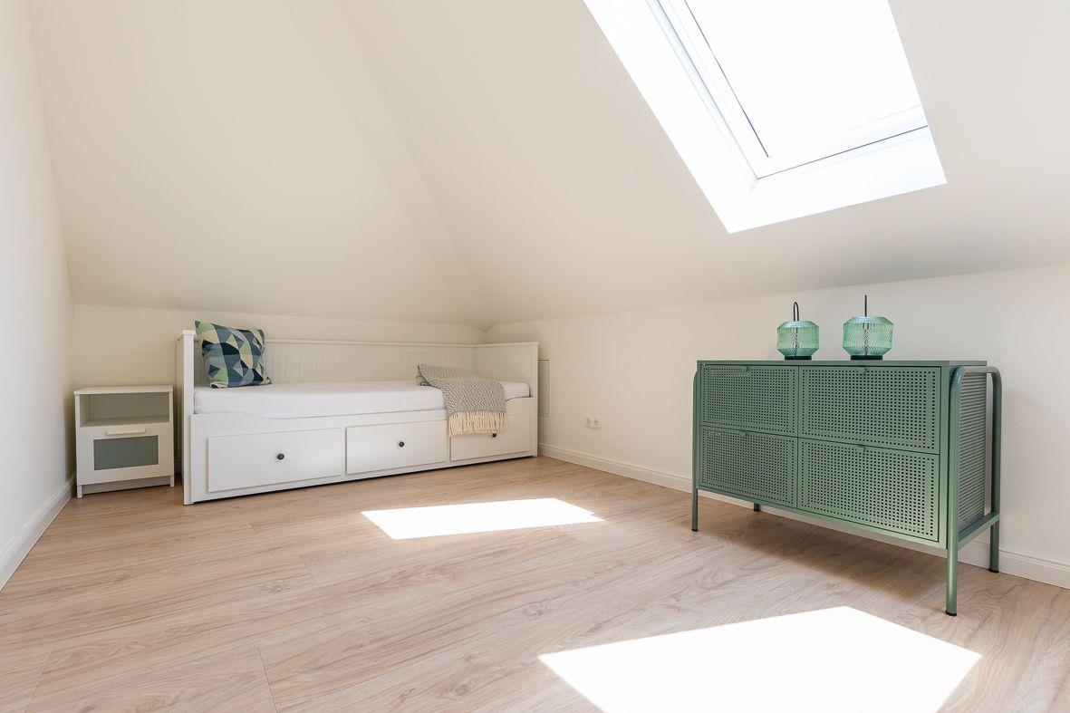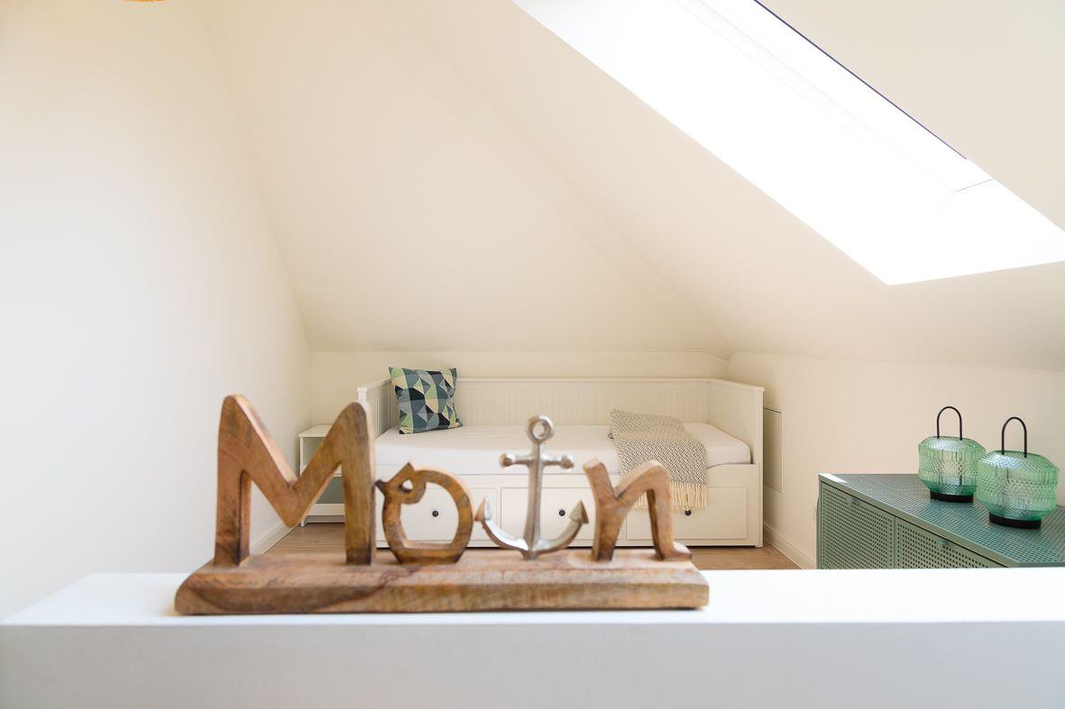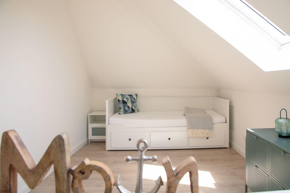 Ein Highlight der Ferienwohnung ist die Dachterrasse, die sowohl vom Wohnzimmer als auch von den beiden Schlafzimmern begehbar ist. Ein Badezimmer ist hell gestaltet und mit einer ebenerdigen Dusche ausgestattet. Die beiden Schlafzimmer mit je einem Doppelbett (180*200) befinden sich ebenfalls im 2. Obergeschoss. Über die Treppe gelangen Sie zu einem weiteren Highlight der Ferienwohnung: Das zweite Badezimmer, das über eine Badewanne und Tageslicht verfügt. Zusätzlich gibt es in diesem offenen Dachbodenbereich ein Tandembett, das zu einer Liegefläche mit 160*200cm erweitert werden kann