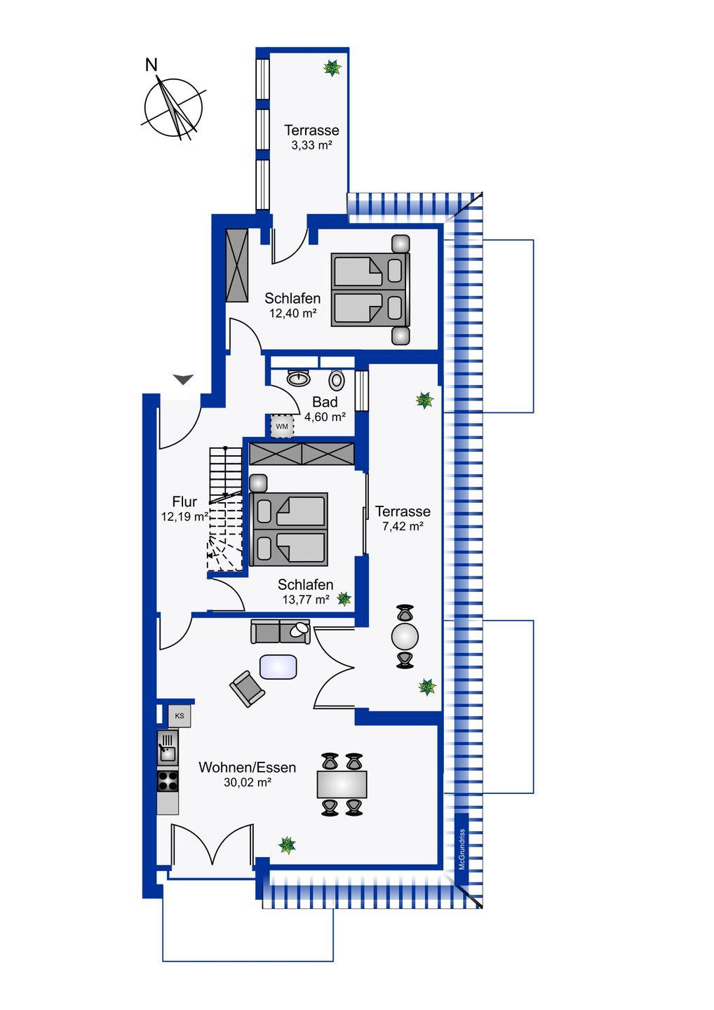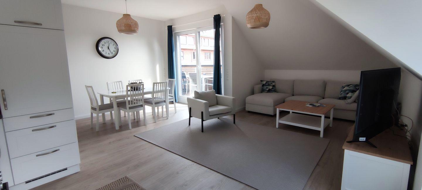 Die helle 2-geschossige Ferienwohnung Theda befindet sich in einem modernen Gebäudekomplex auf einem großen, grünen Gelände und lädt zu erholsamen Urlauben ein – perfekt für Paare, Freunde oder die ganze Familie. Sie ist liebevoll skandinavisch eingerichtet und bietet auf 91 m² reichlich Platz für bis zu 6 Personen plus 2 Babys. Kurze Wege zum Strand, zur Promenade und zu Restaurants machen sie zur idealen Basis für entspannte Tage. Die tolle Dachterrasse lädt zum gemeinsamen Verweilen ein.