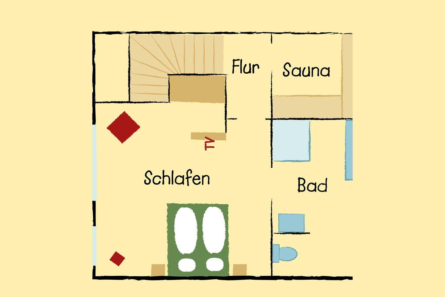 - Schlafzimmer 2 im OG mit Doppelbett, SAT/TV, Kleiderschrank und Sessel