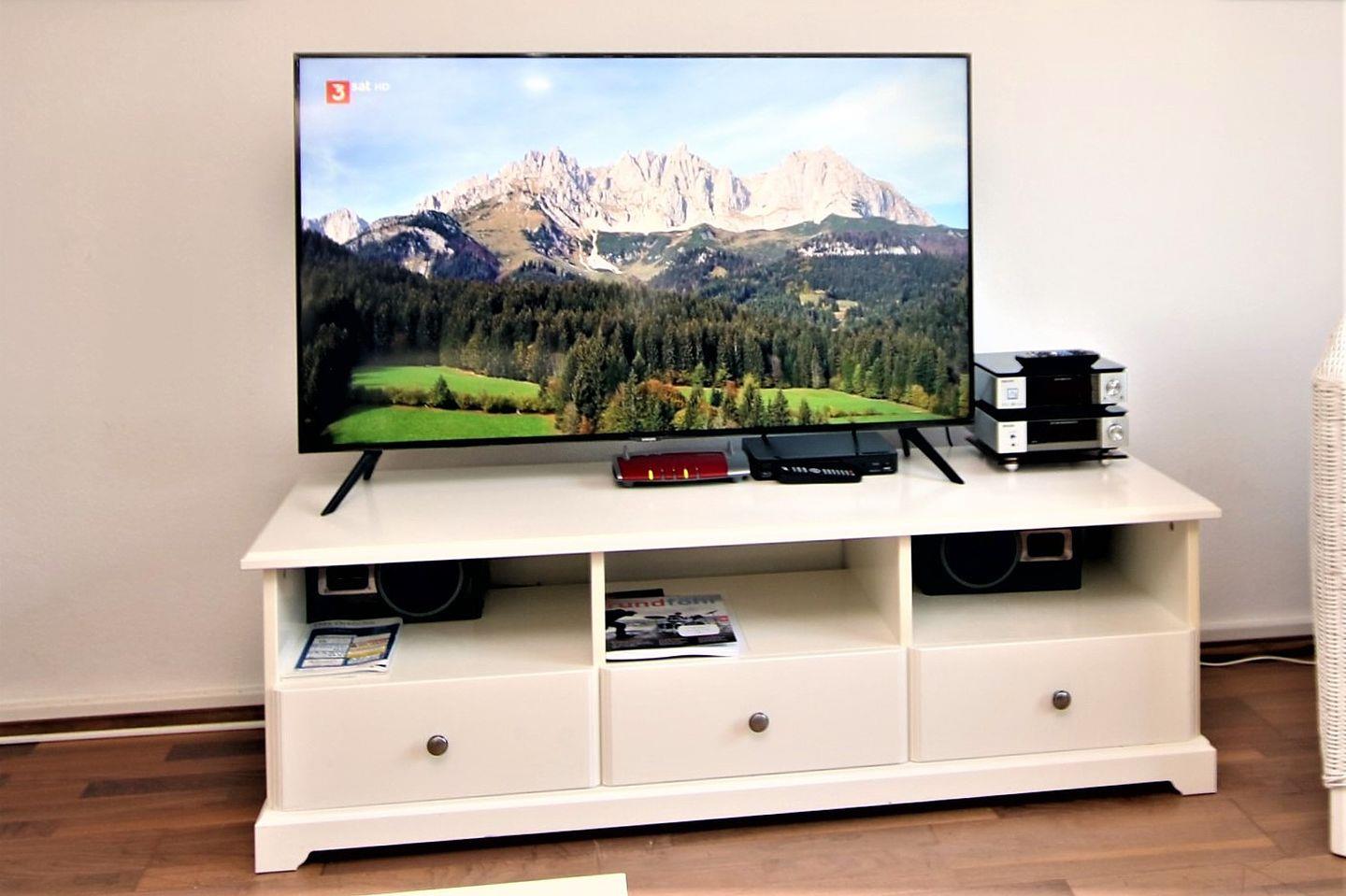 - Wohnzimmer mit Sitzecke, 2 er Couch, TV- Gerät