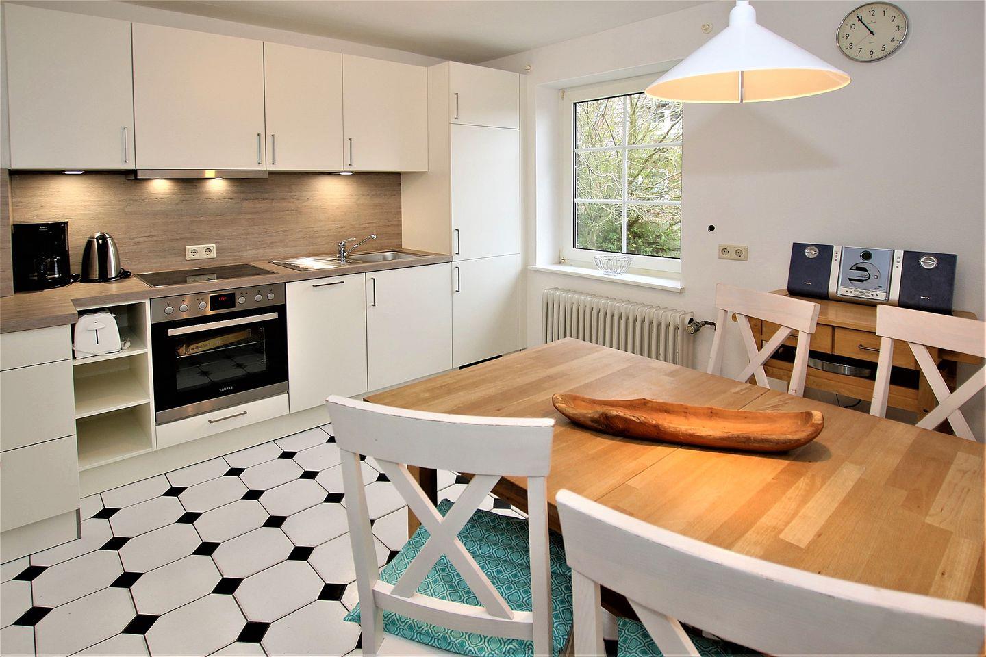 - Küche mit Esstisch, Spülmaschine, Waschmaschine