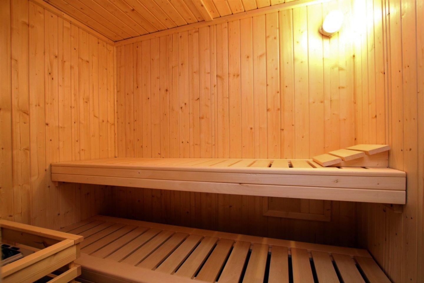Im Untergeschoss befindet sich eine Sauna mit Ruhebereich und Terrasse, sowie ein modernes großes Bad.