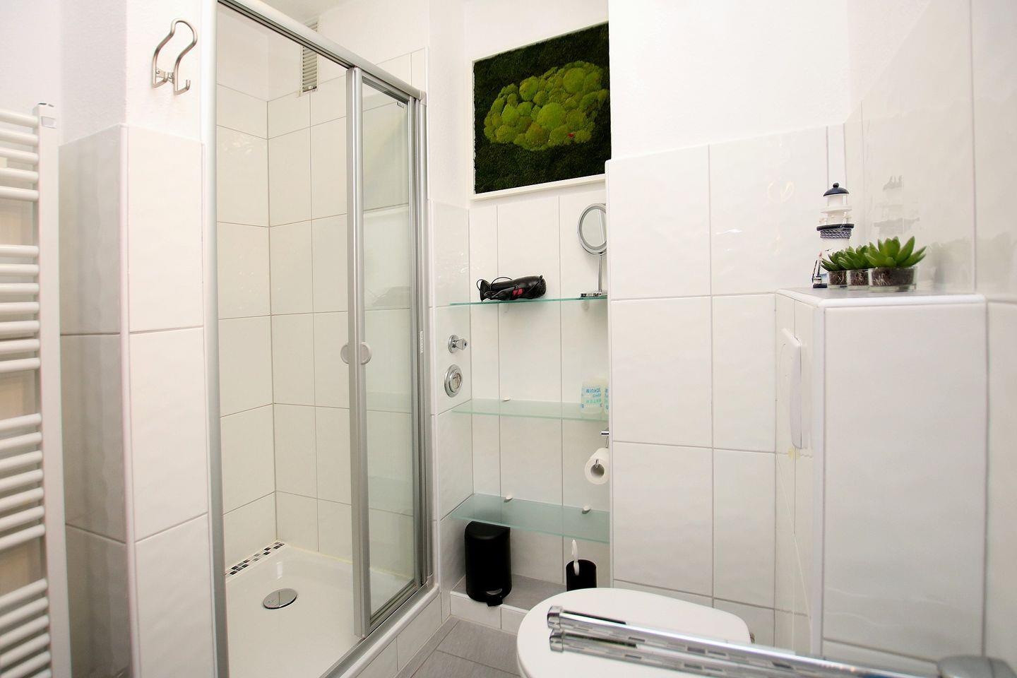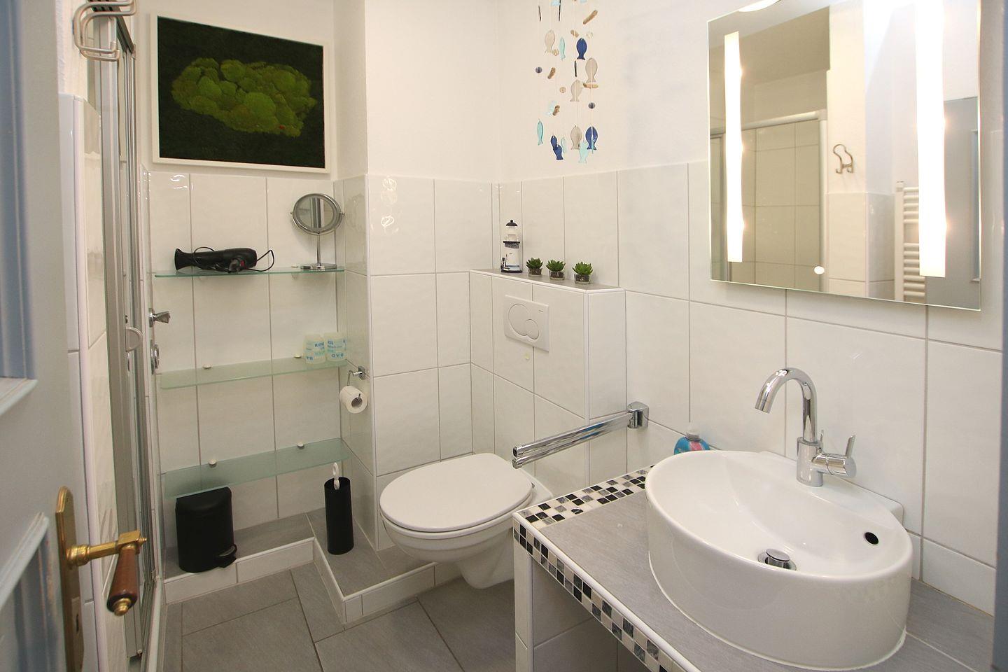 Parkplatz und Fahrradständer am Haus, Strand und Einkaufsmöglichkeiten in unmittelbarer Nähe. Zum Zentrum, Kurmittelhaus und Wellenbad ca. 15-20 Min. Fußweg.