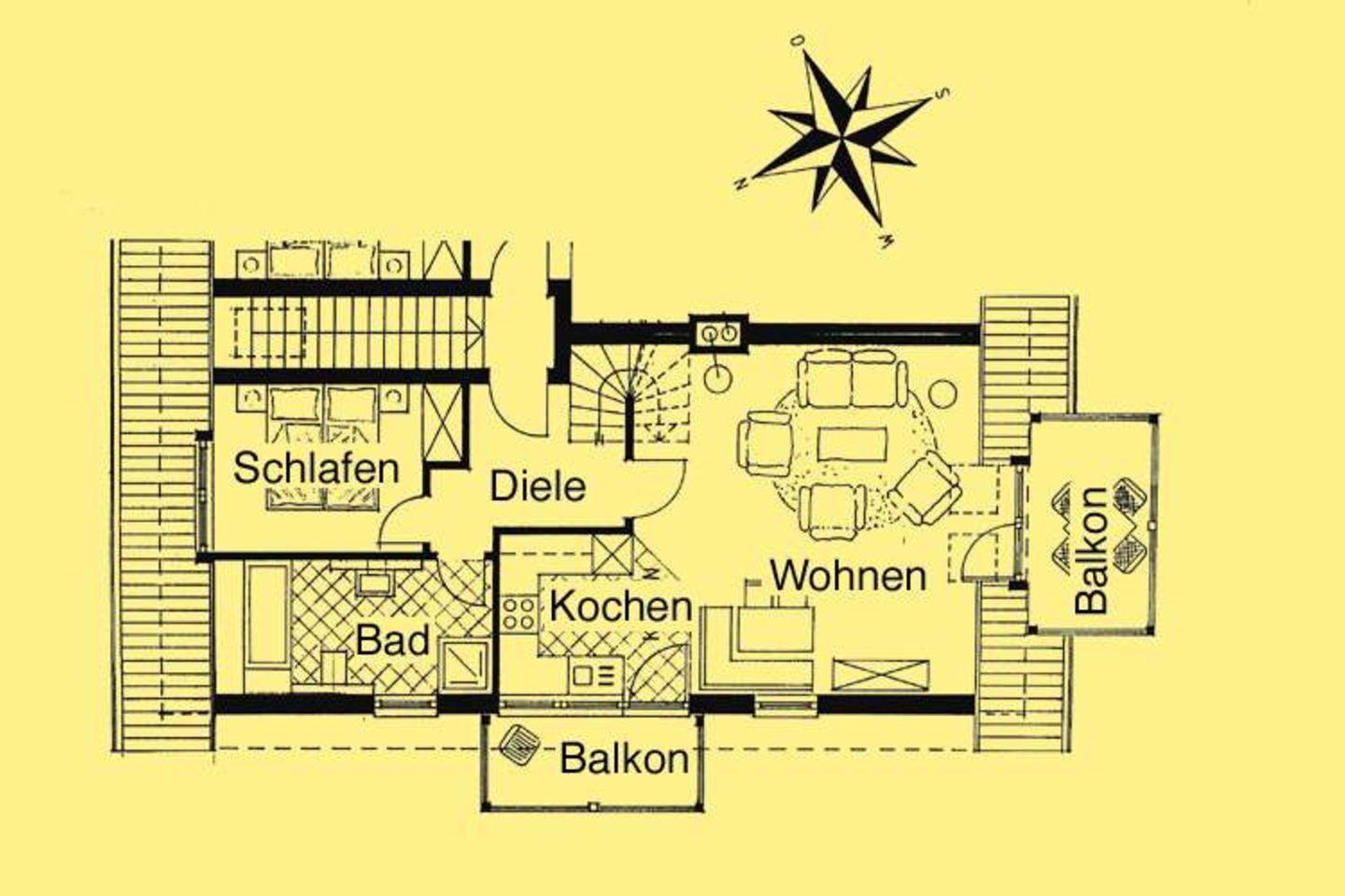 Ferienwohnung in Wyk auf Föhr, Wiesenweg 2a, Whg. Nr. 3, Mit 4 Sternen beim DTV ausgezeichnete 3-Zimmer-Nichtraucherwohnung (ca.74 qm). Obergeschoss + Spitzboden mit 1 Südbalkon und 1 Westbalkon. WOHNZIMMER: komfortable Wohnküche mit Sitzgarnitur, Essplatz mit 6 Stühlen und Kaminofen für gemütliche Stunden. SCHLAFZIMMER 1 im 1 OG: Doppelbett, Kleiderschrank. SCHLAFZIMMER 2 im Spitzboden :Doppelbett, Kleiderschrank, Couch und TV mit DVD. BAD im 1 OG: Dusche/Wanne/WC, Waschmaschinen-Trockner Kombigerät. Gäste/WC im Spitzboden. Die Einrichtung ist hochwertig und komfortabel. Im Bad ist eine Fußbodenerwärmung installiert. Auf den Balkonen stehen Ihnen ein Holztisch und Holzstühle zur Verfügung. Fahrradständer und Parkplatz am Haus. Internetanschluss ist vorhanden (WLAN). Zum Wellenbad und Strand ca. 3 Minuten Fußweg und in die Innenstadt ca. 10 Minuten Fußweg. Unsere Meinung: Besser geht es kaum. Eine Wohnung zum wohlfühlen! Haustier ist auf Anfrage und gegen Gebühr erlaubt.