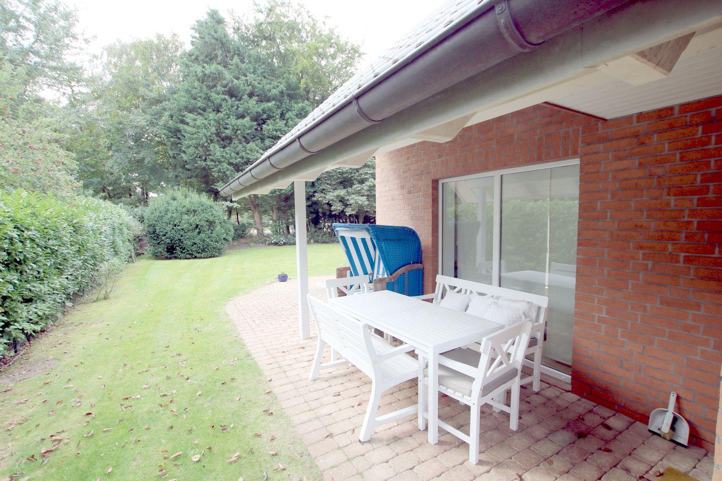 Willkommen in Wyk. diese 3- Zimmer Nichtraucherwohnung im Erdgeschoss eines Neubaus verfügt über eine herrliche SÜDTERRASSE mit gemütlichem Strandkorb und bequemen Terrassenmöbeln. Ebenfalls ist dort eine überdachte OSTTERRASSE. Im großen Garten können Sie mit den Kindern spielen und die ganze Familie den Tag beim Abendessen im freien ausklingen lassen.