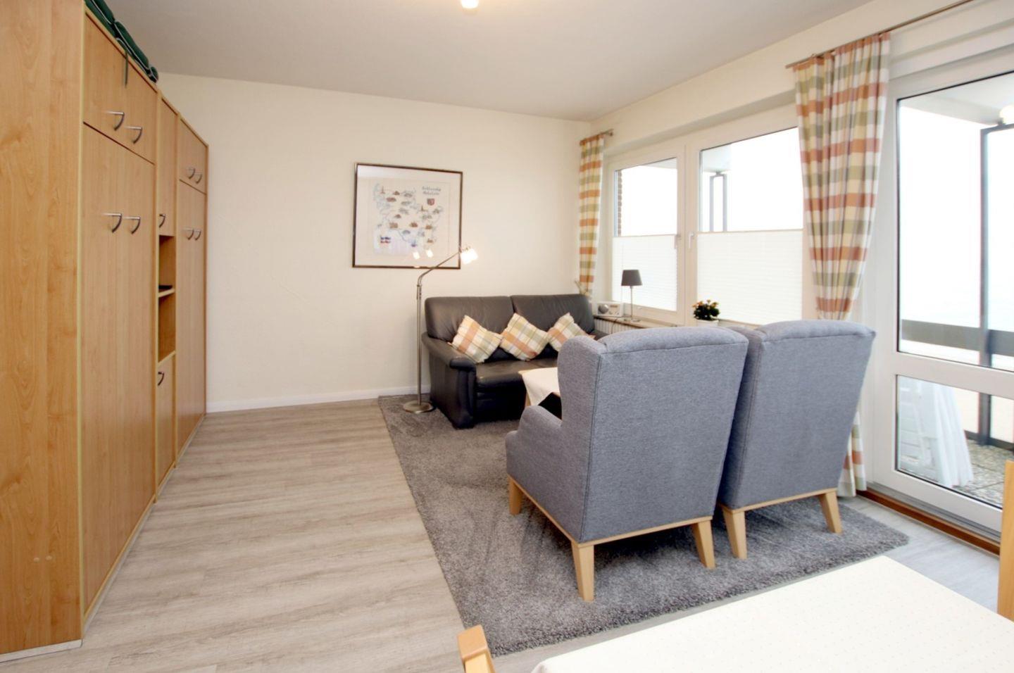 - Wohn-/ Schlafraum mit 2 Schrankbetten, Sitzecke, Essplatz, TV