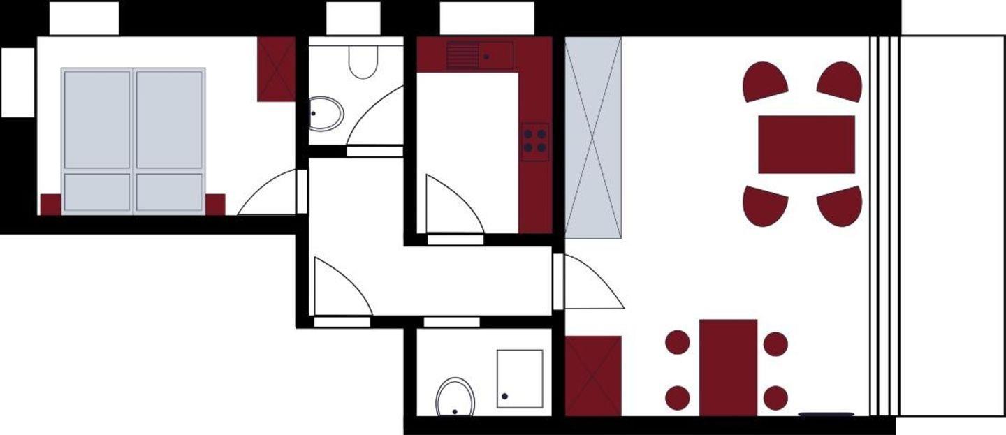 Wohn- / Schlafraum mit 2 Schrankbetten, gemütlicher Sitzecke, Essplatz, Flachbild-TV, Radio, Essplatz für bis zu vier Personen. 1 separates Schlafzimmer mit einem Doppelbett , separate Küche, 1 Duschbad,1 separates WC, Balkon inkl. Gartenmöbel und kostenfreies W-LAN.