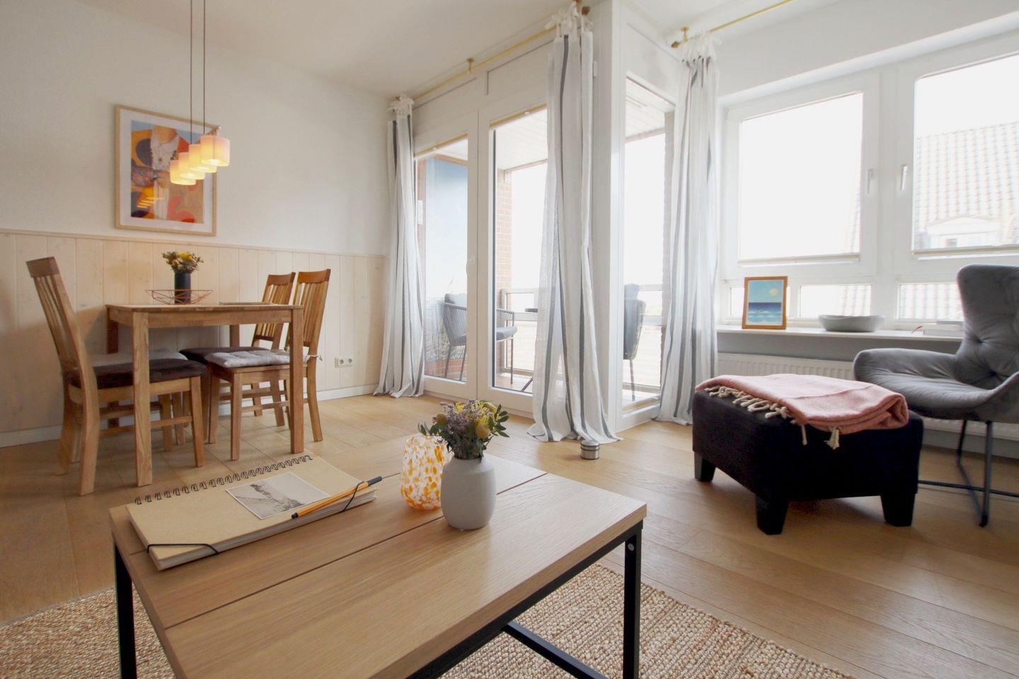 Unsere gemütliche Ferienwohnung „Lüttje Uul“ mit Meerblick lädt zum Wohlfühlen in der „friesischen Karibik“ ein.