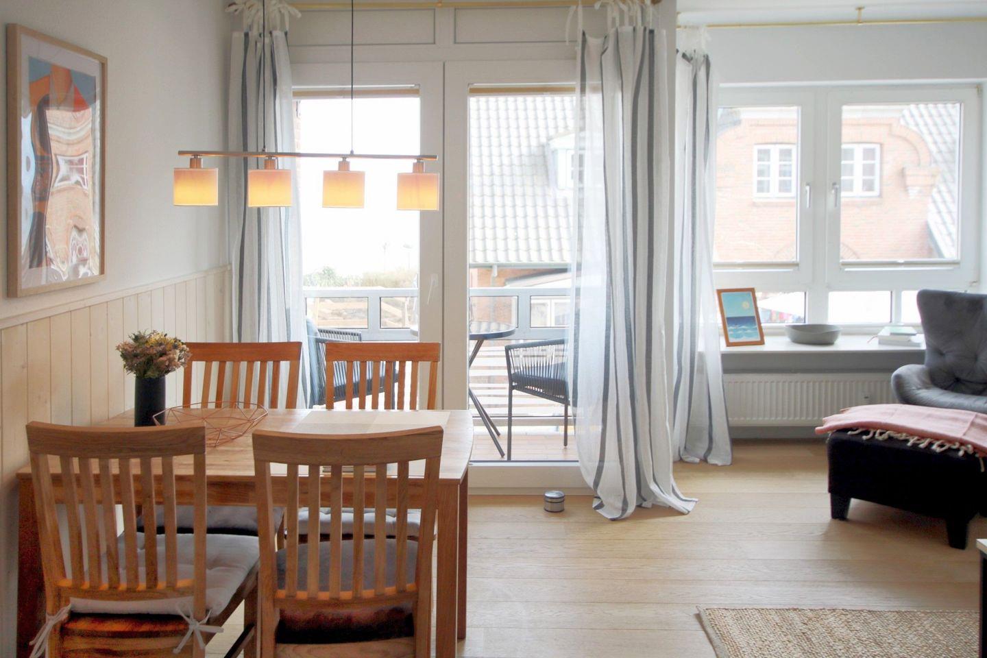Auf 44qm bietet die Zwei-Zimmer-Wohnung mitten im Herzen von Wyk alles, was man für einen erholsamen Insel-Urlaub braucht. Aus dem Wohnzimmer und vom Balkon lassen sich aus zweiter Reihe zum Strand Ebbe und Flut sowie die Fähren beobachten.