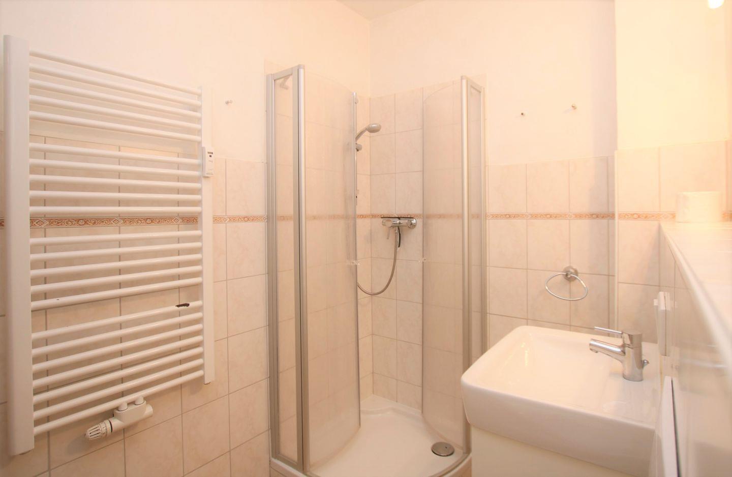 Im FLUR finden Sie den großzügigen Kleiderschrank. BADEZIMMER mit Dusche und WC. SCHLAFZIMMER mit 2 Einzelbetten (80 x 200 cm) einer Kommode und großem Fenster.