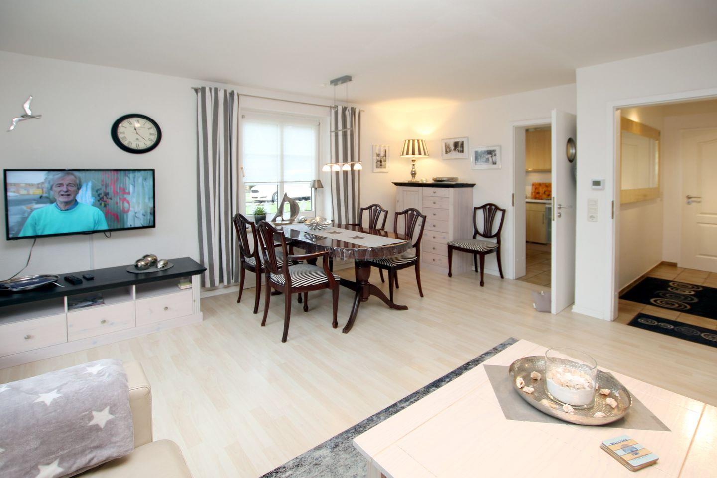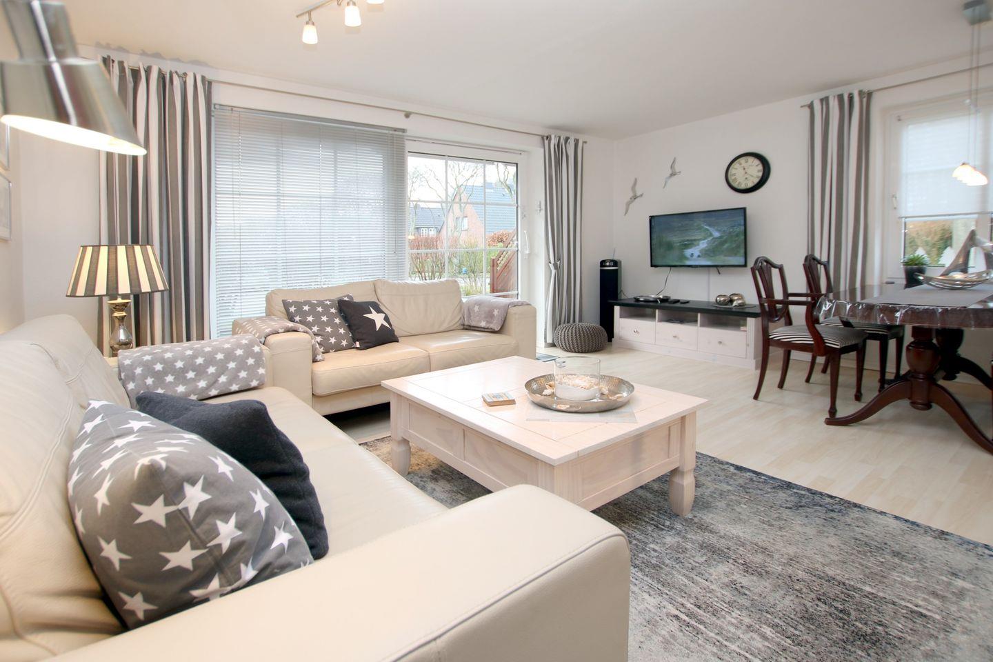 Schöne helle 3-Zimmer-Ferienwohnung mit ca. 80 qm. Die stilvoll eingerichtete Wohnung erstreckt sich auf Erd- und Untergeschoß.