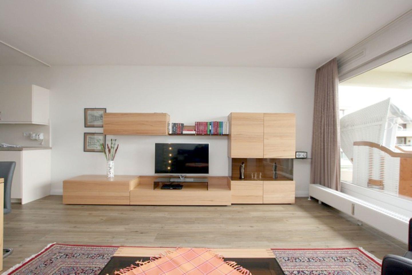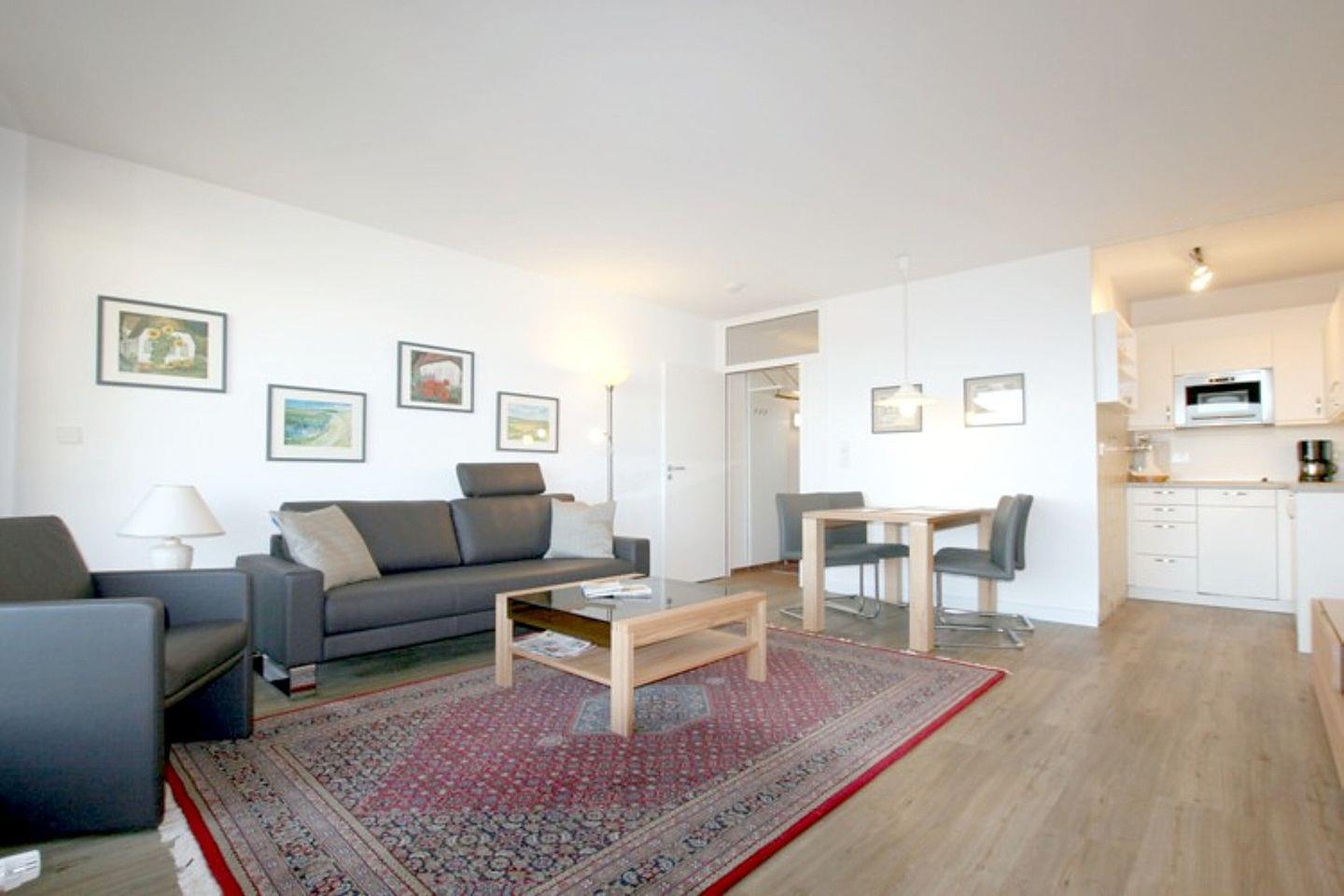 Ferienwohnung in Wyk auf Föhr, Gmelinstraße 5 d, Whg. Nr. A15, ca. 52 qm große 2-Zimmer-Nichtraucherwohnung in der 1 Etage mit Südbalkon und Meerblick (Halligen). Sehr hochwertige Möbel im Wohnbereich und sehr hochwertiges Bett.