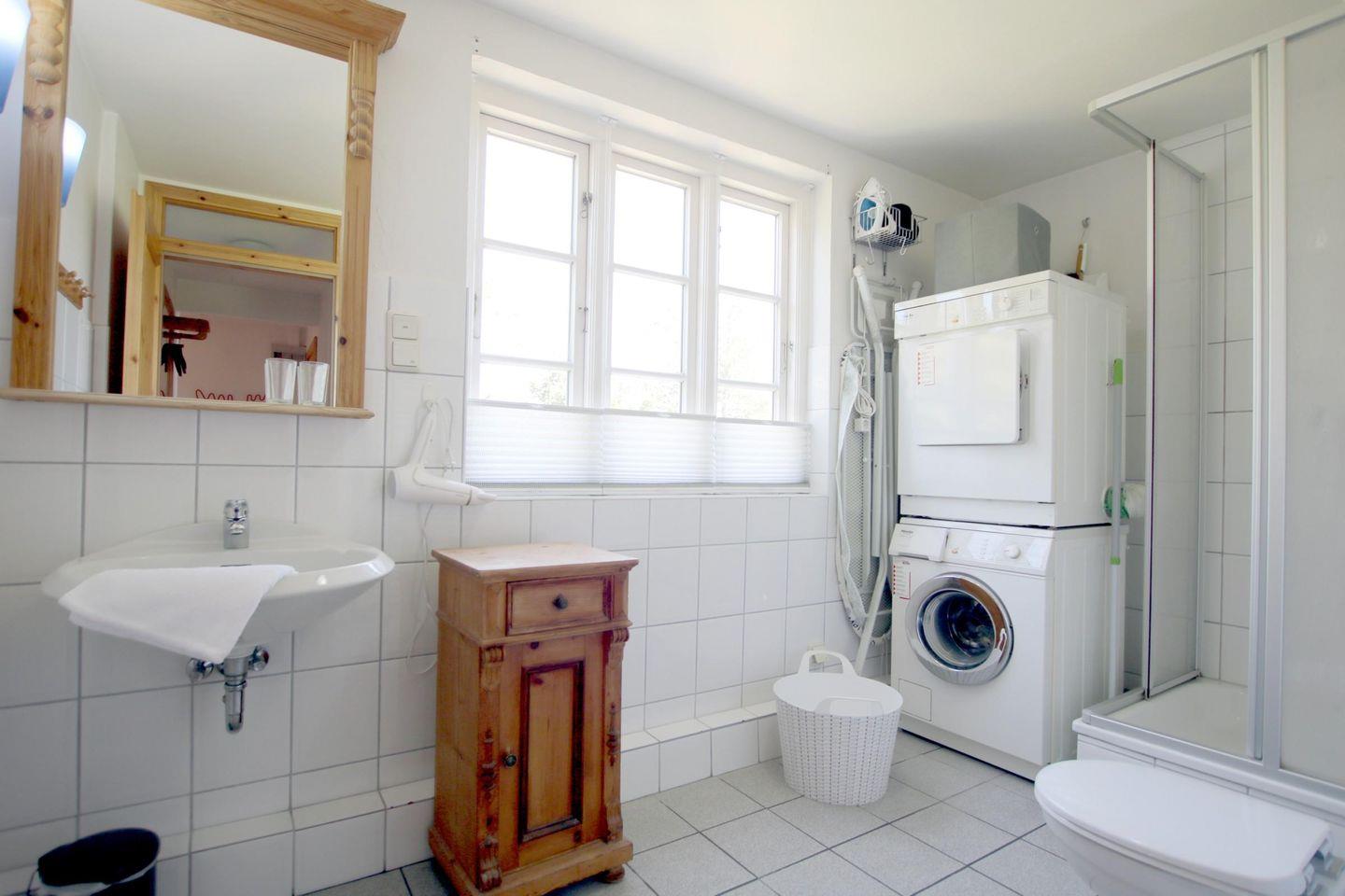 Waschmaschine und Trockner. Fahrräder können Sie geschützt im Gartenhaus unterstellen.