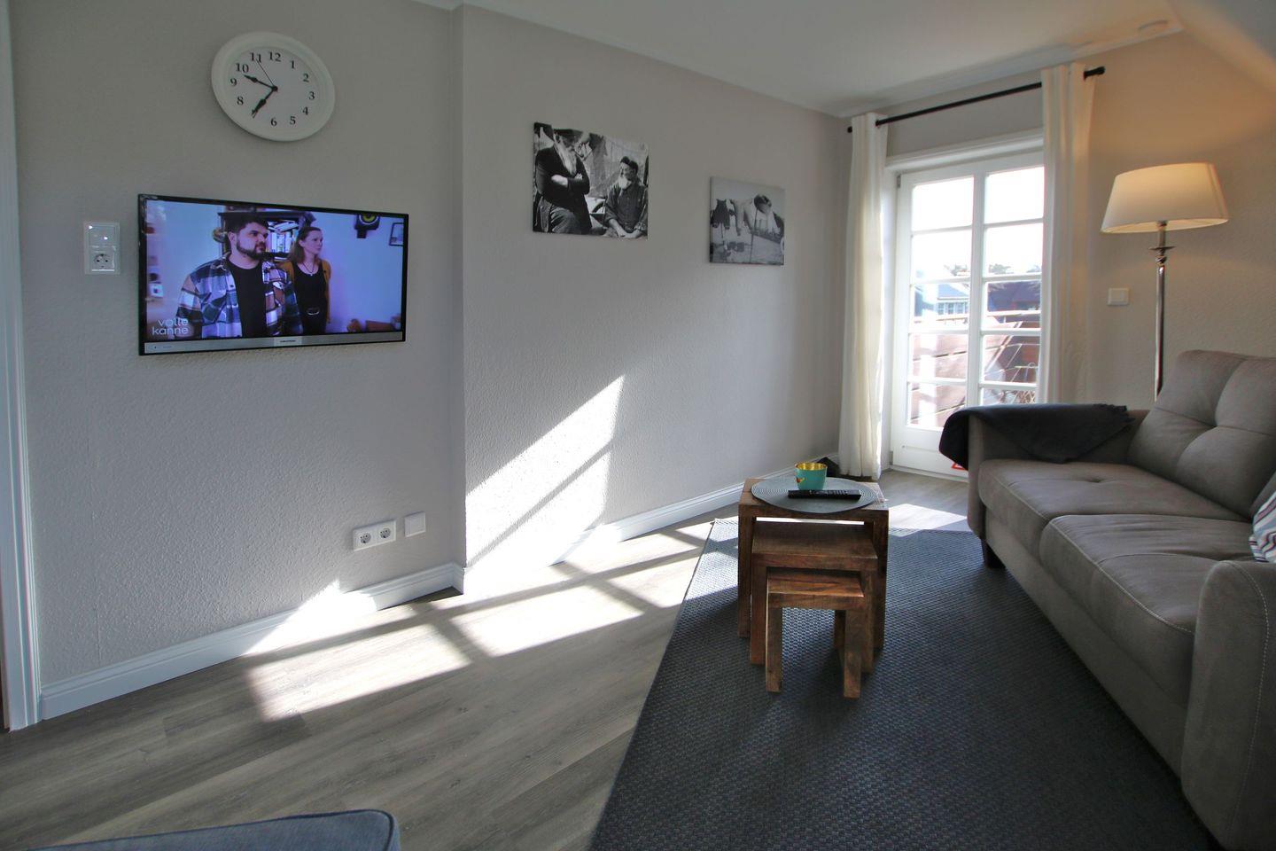 - Wohnzimmer mit Couch und Sessel Zugang zum Südbalkon