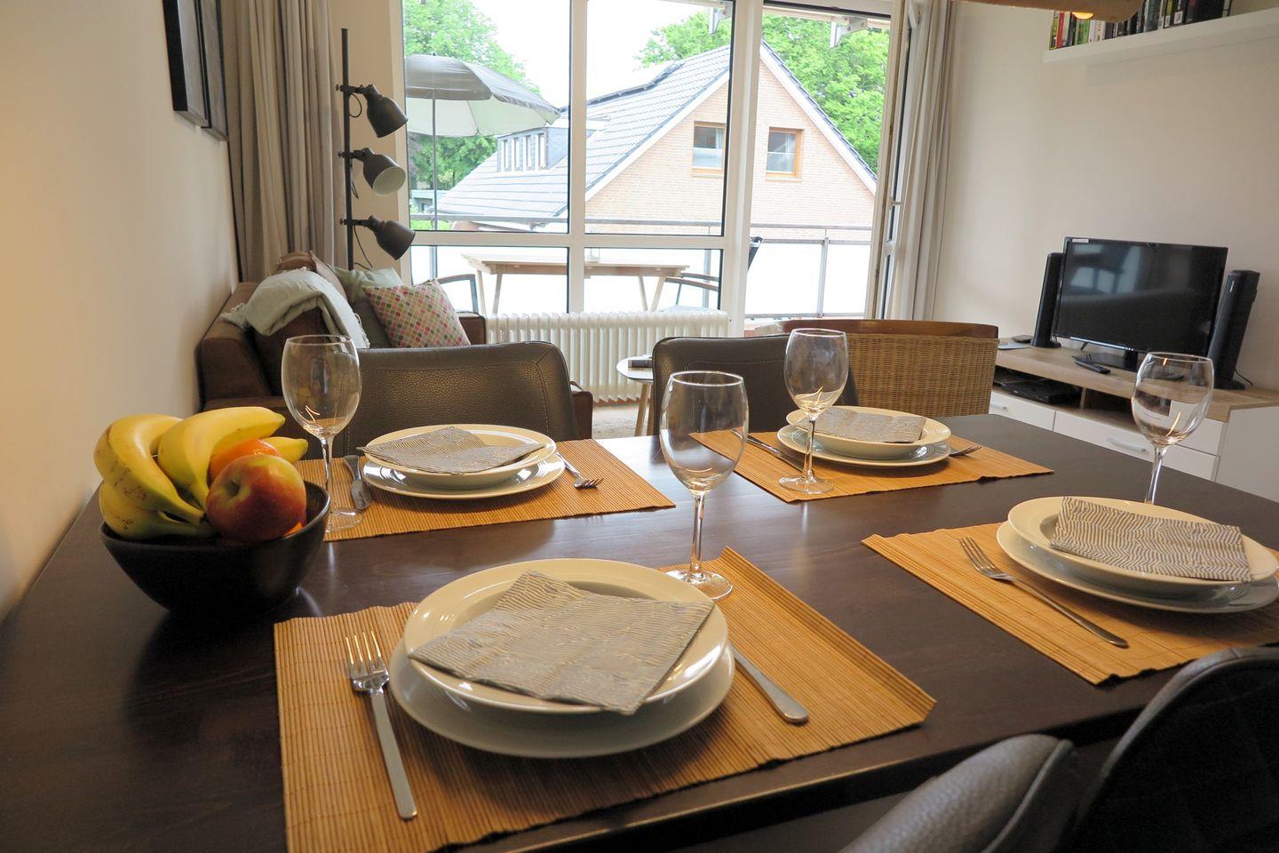 Willkommen in bester Stadtlage im Herzen von Wyk auf Föhr und einer Ferienwohnung, die alle Vorzüge einer zentralen und dennoch ruhigen, naturnahen Lage bietet.