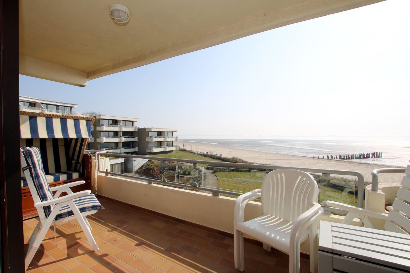 - Balkon mit fantastischem Blick auf Strand, Meer und die Halligen.