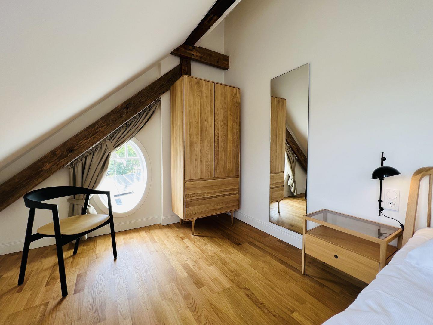 Hier konnten sich die Designer*innen austoben und mit Liebe zum Detail gestalten. Hochwertige und nachhaltige Einrichtung: Vollholzmöbel und Holzböden, hohe Decken - und insgesamt eine Gestaltung mit dem Gedanken zur Nachhaltigkeit; Qualität und stilvollem Design.