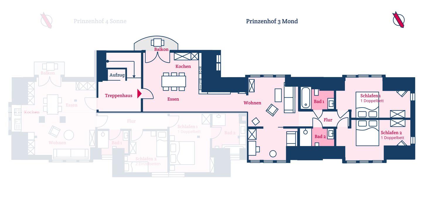 Dachwohnungen - MOND & SONNE - im Prinzen-Hof, am Südstrand.