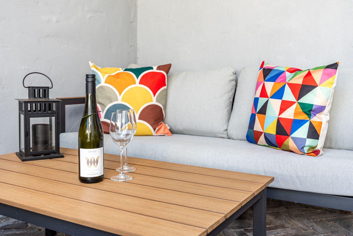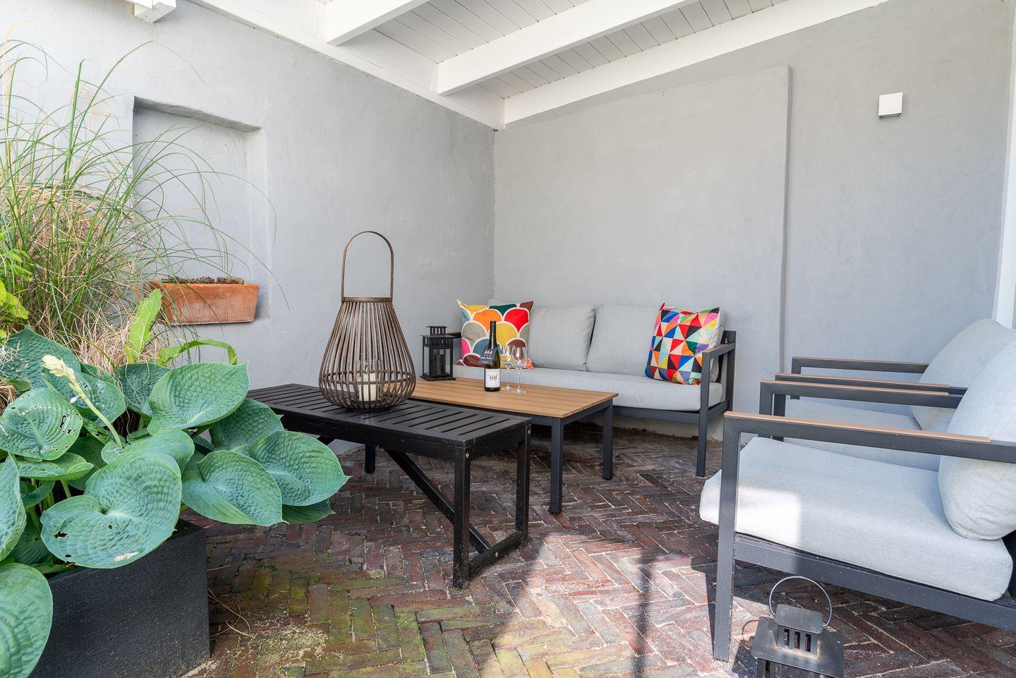 Exklusives Ferienhaus in zentraler, strandnaher Lage mit Innenhof und überdachter Terrasse.