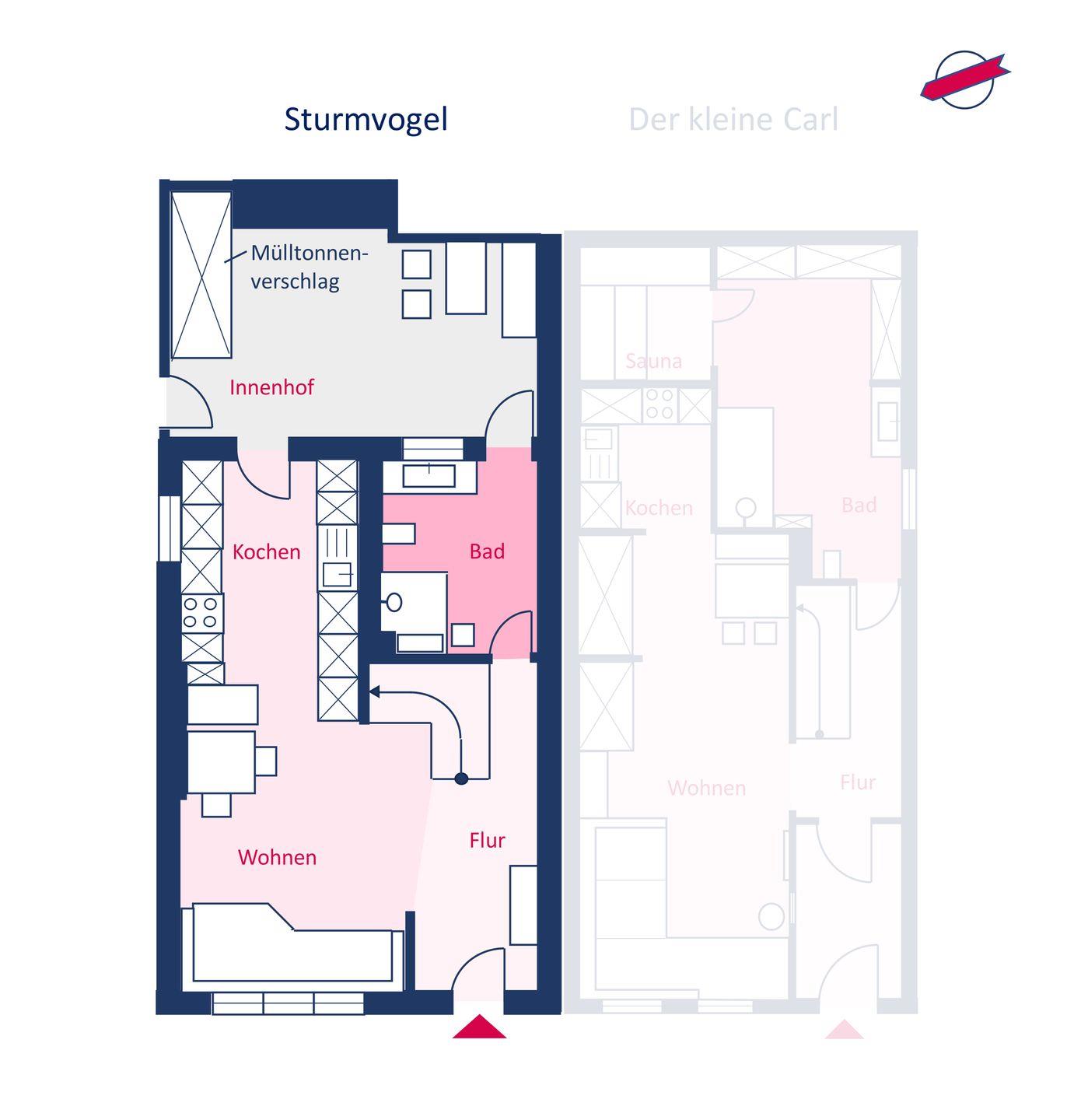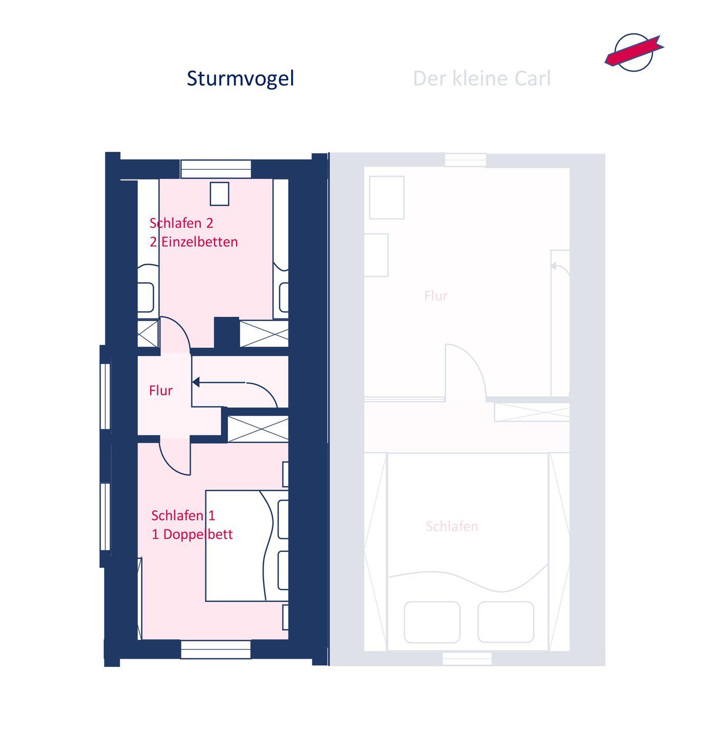 Das Ferienhaus Sturmvogel wurde im Jahr 2023 aufwendig saniert und verfügt über 2 Schlafzimmer und 1 Bad und bietet somit komfortabel Platz für bis zu 4 Personen zuzüglich einer Kleinkinderaufbettung. Die Mitnahme eines Hundes ist auf Anfrage gestattet.