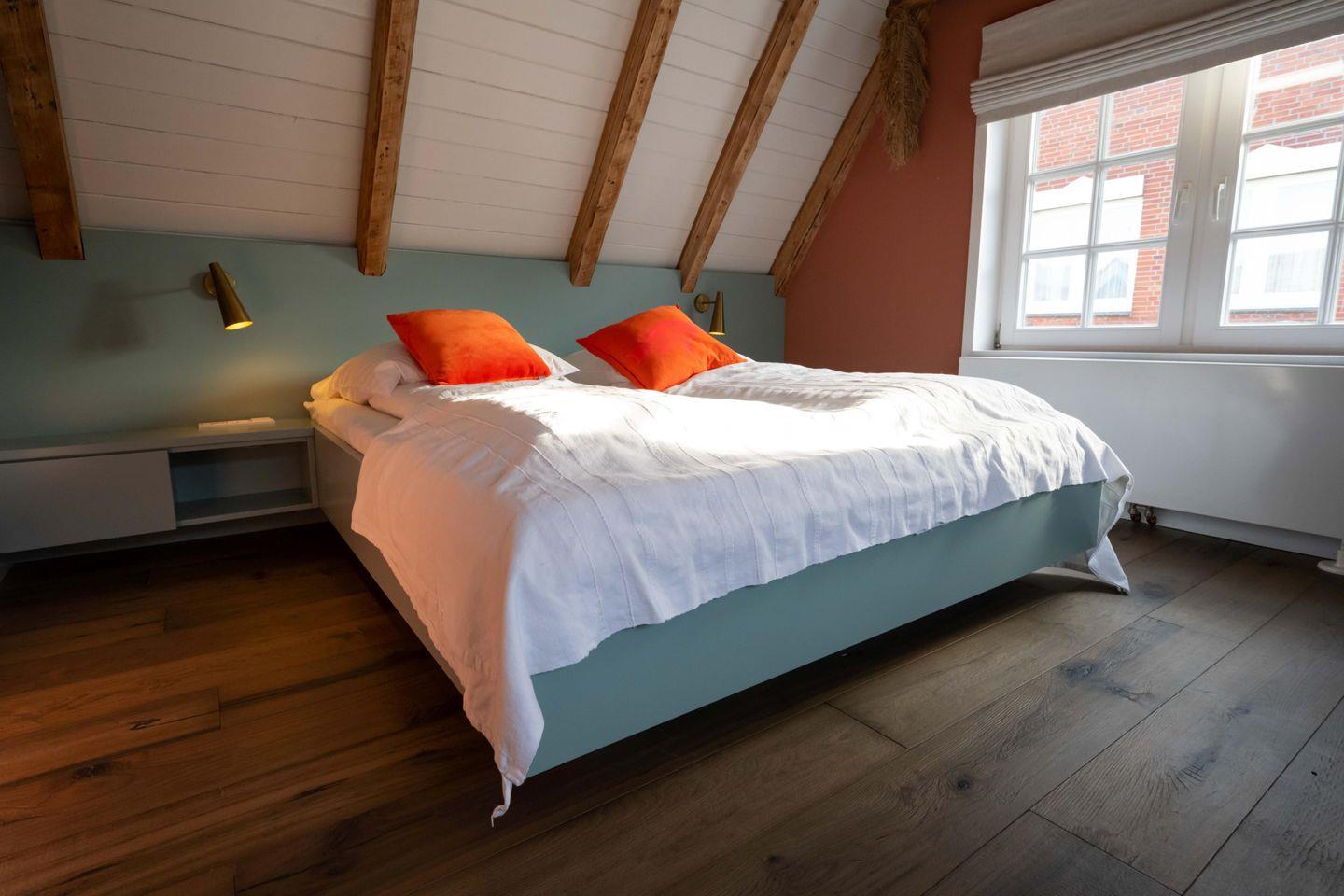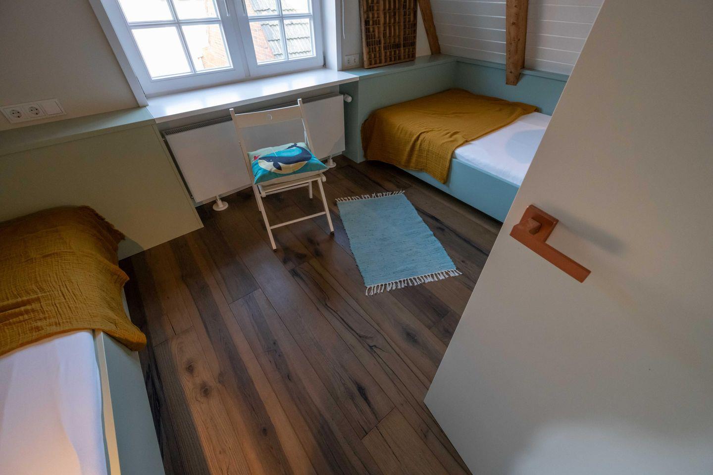 Im Obergeschoss sind die beiden Schlafzimmer gelegen - eines mit einem Doppelbett und eines mit zwei Einzelbetten ausgestattet.