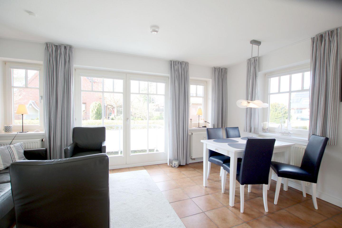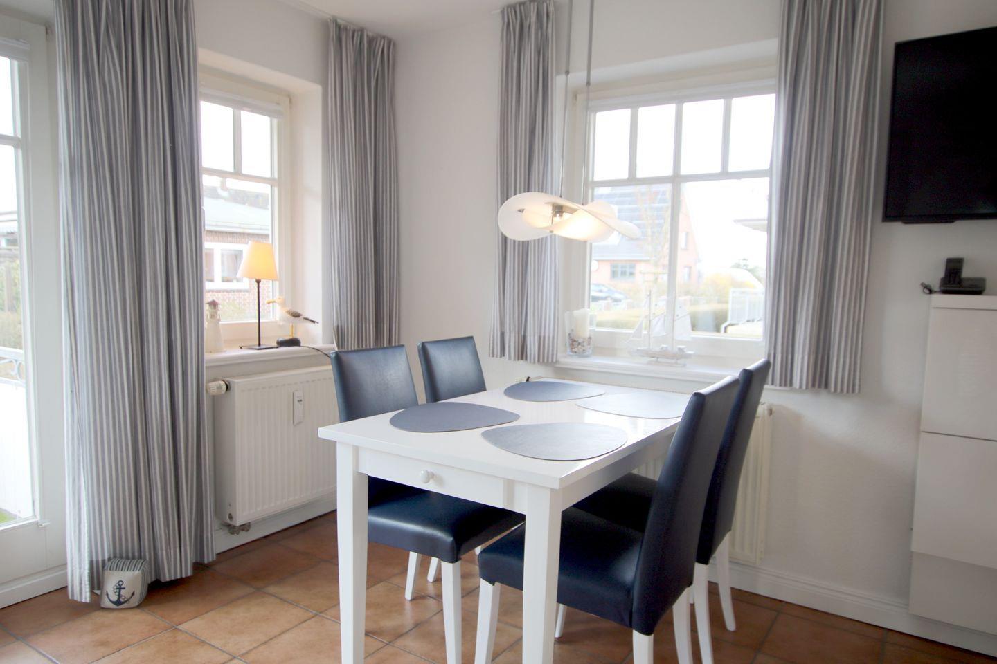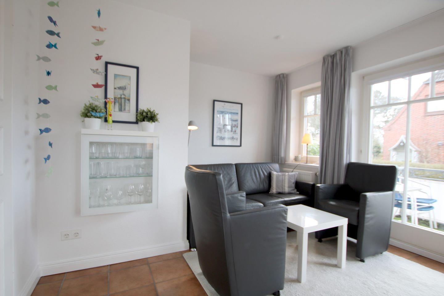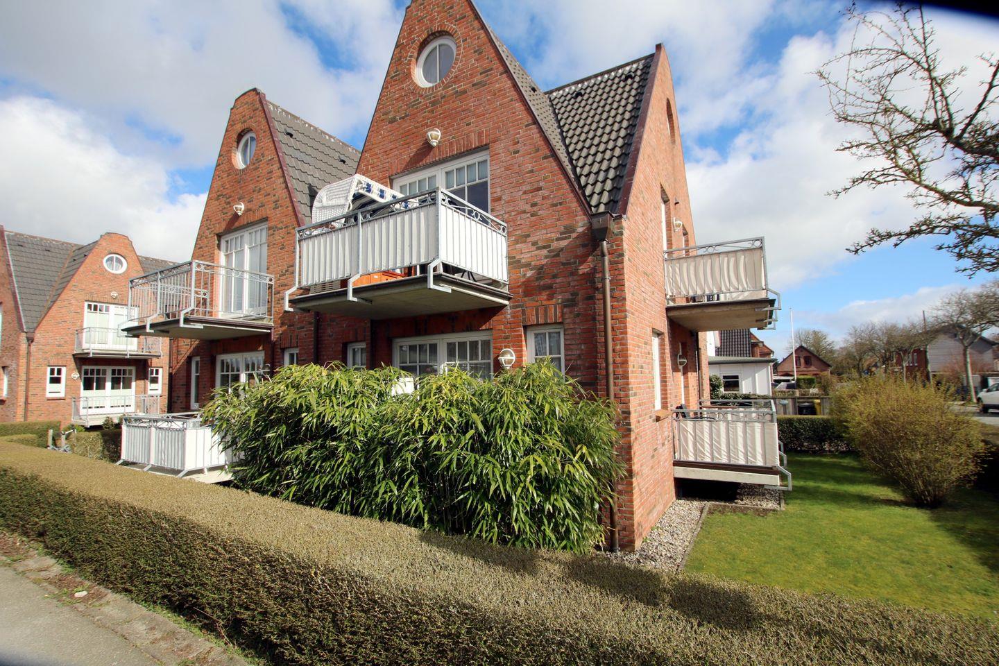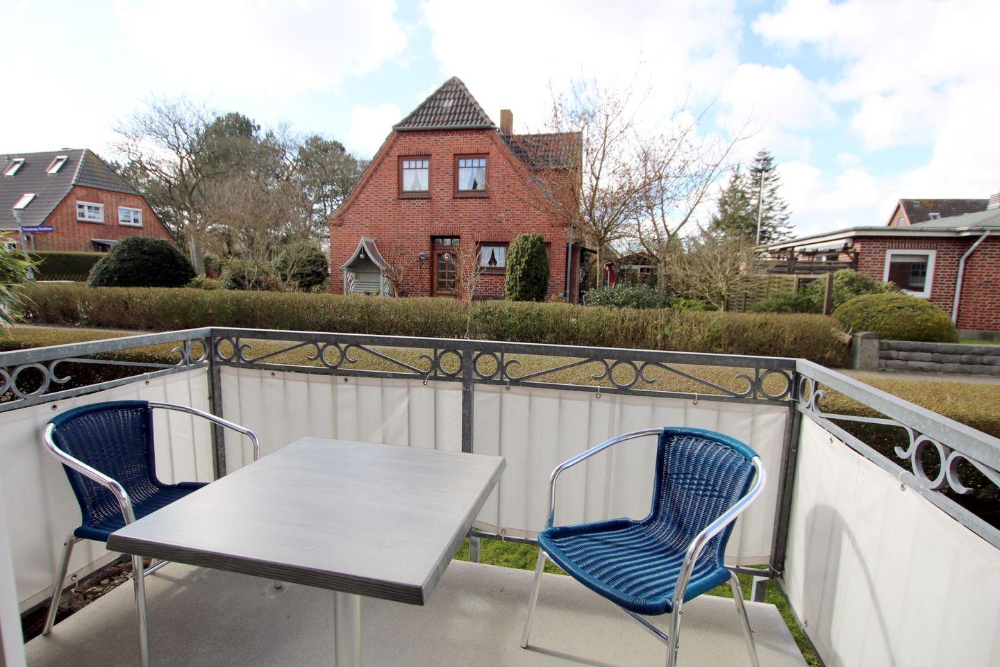 Ferienwohnung in Wyk auf Föhr, Rungholtstraße 6, Wohnung 1, 2 Erwachsene, Nichtraucherwohnung, keine Haustiere erlaubt, ca. 40 qm im Hochparterre mit einem Ostbalkon (mit Strandkorb, 2 Gartenstühlen und Tisch) und einem Süd-Westbalkon (2 Gartenstühlen mit Tisch und Gartenliege)
