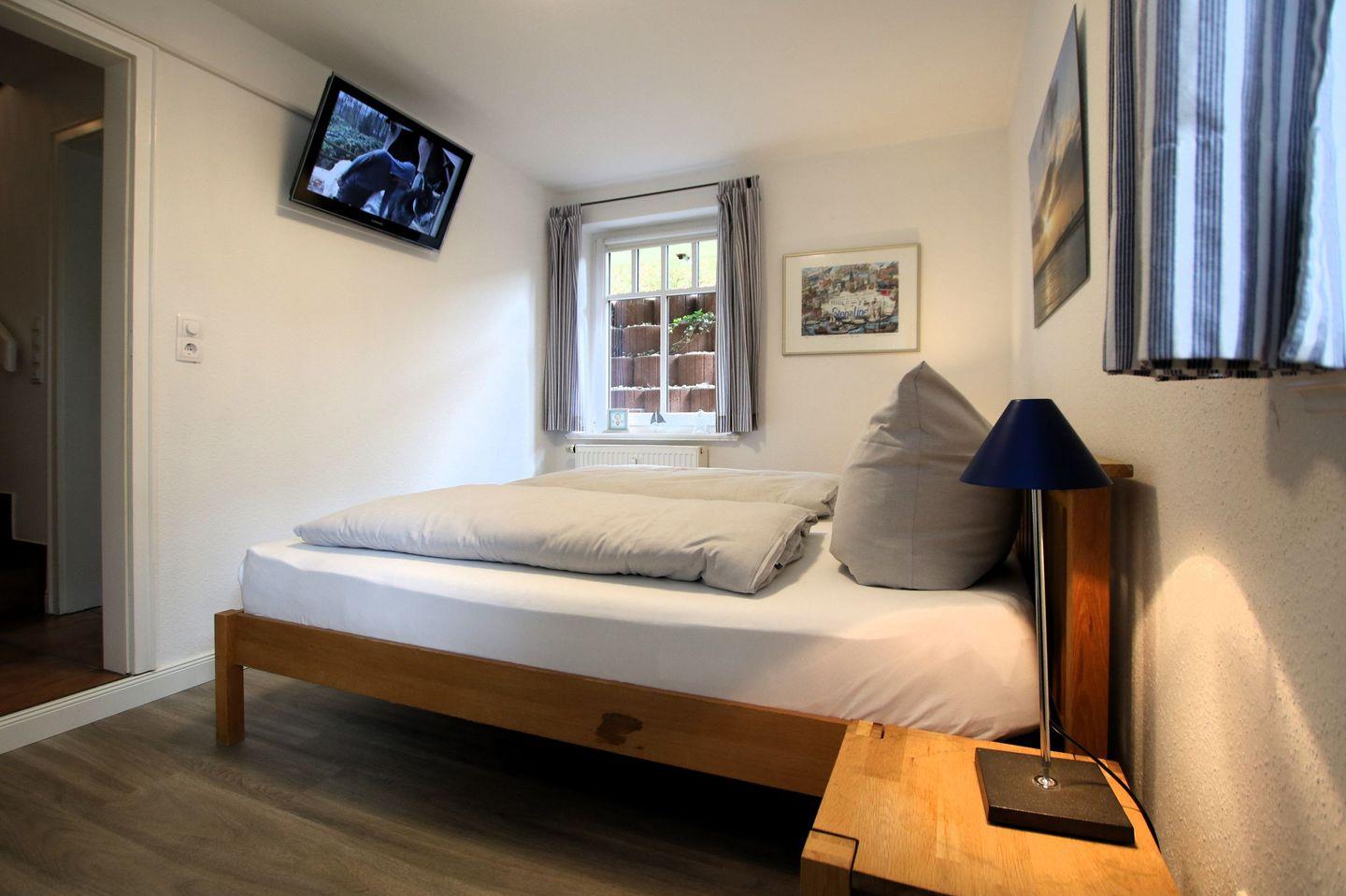 - Schlafzimmer mit Doppelbett im UG, Kleiderschrank, TV