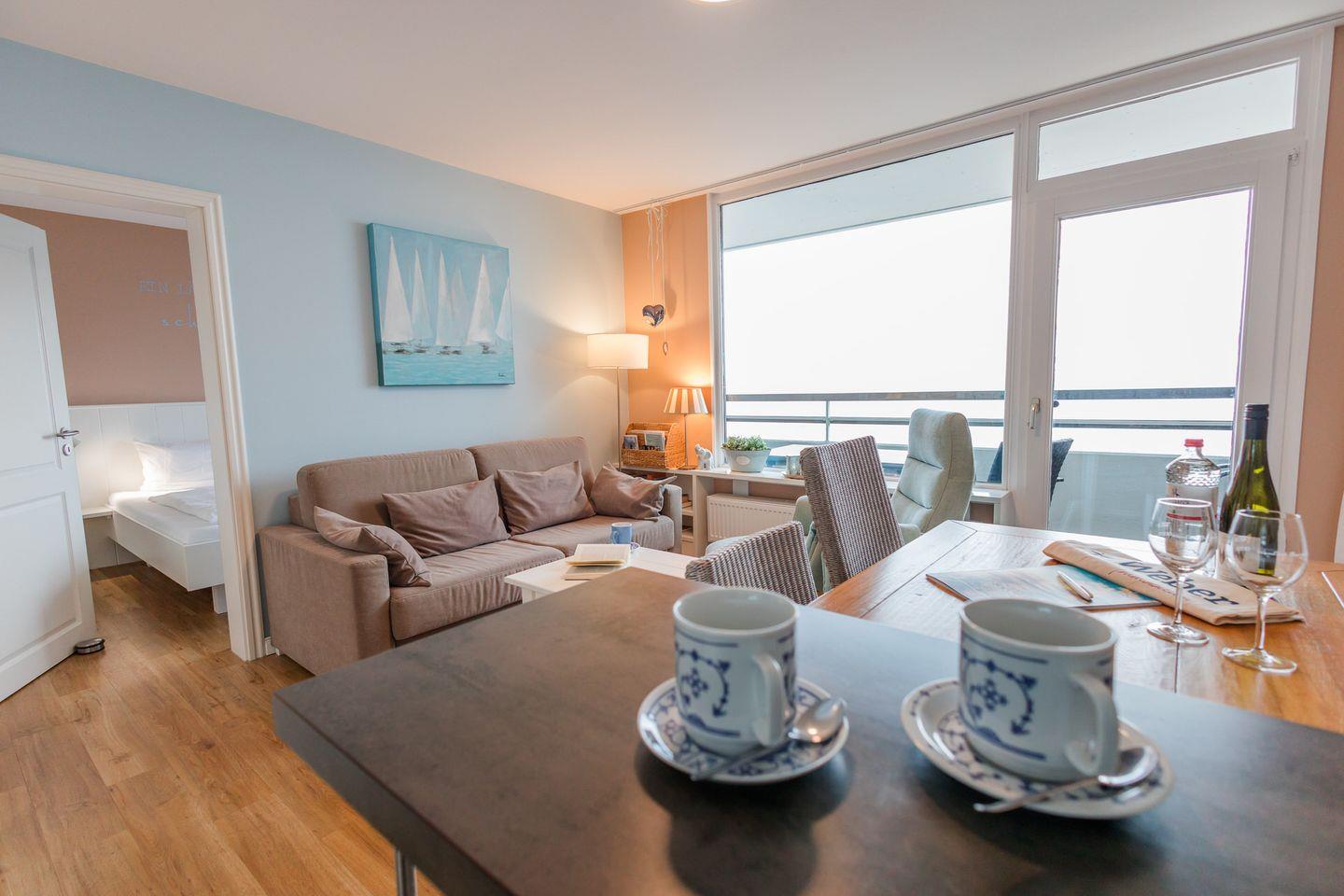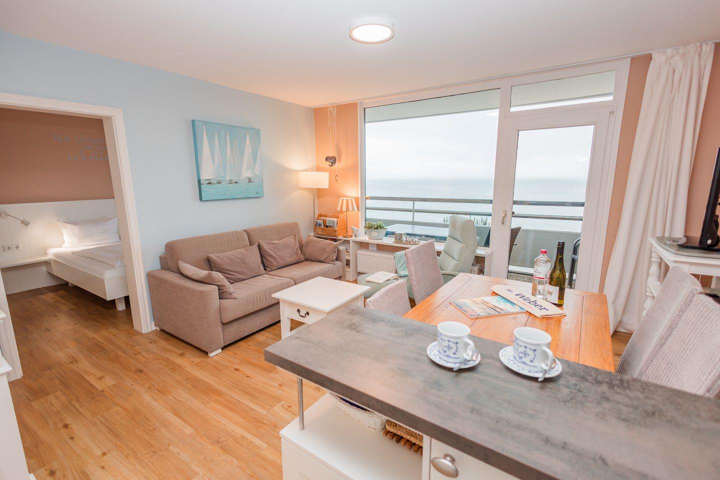 Ferienwohnung mit traumhaft schönem Strand- und Meerblick vom eigenen Balkon.
