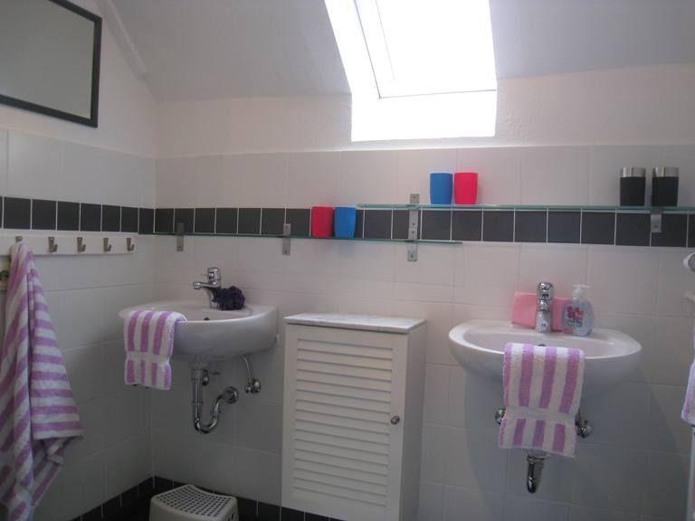 Das Badezimmer ist mit einer bodengleichen Dusche, einem WC sowie einem Waschbecken ausgestattet. Zusätzlich gibt es ein Gäste-WC, das besonders für größere Gruppen von Vorteil ist. Die Wohnung ist auch mit einem Haartrockner sowie einer Erstausstattung an Handtüchern und Bettwäsche versehen, damit Sie sich sofort wohlfühlen können.
