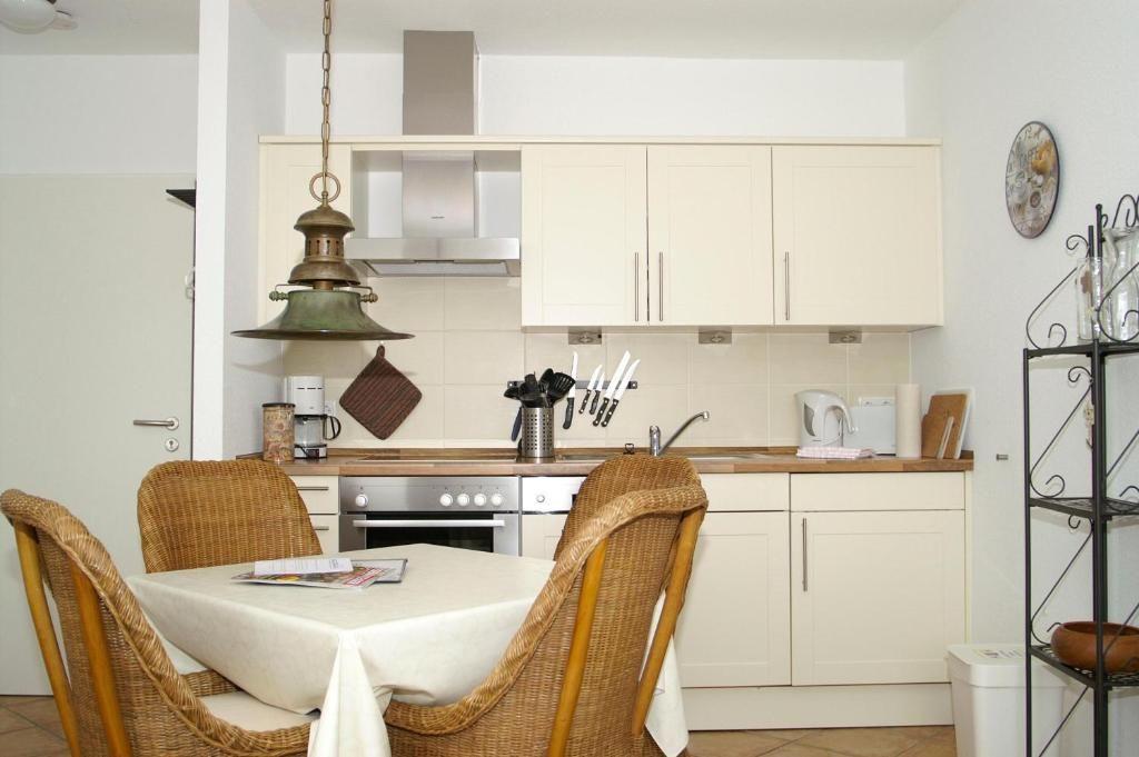 Unsere Wohnung "Wellenreiter" ist nordisch gemütlich mit dänischen Teakmöbeln ausgestattet. Der Blick aus den Schlaf- sowie Wohnzimmer lässt einen die Zeit vergessen und vom Frühstückstisch aus kann man die Fähren anlegen sehen . . .