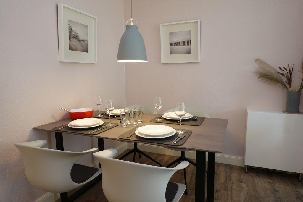 Das Herzstück der Wohnung ist der einladende Wohnbereich, der offen zur voll ausgestatteten, modernen Küche gestaltet ist. Hier finden Sie alles, was Sie für die Zubereitung kulinarischer Köstlichkeiten benötigen: einen Cerankochfeldherd, einen Backofen, eine Spülmaschine und sogar eine Kaffeemaschine für Ihre morgendlichen Genussmomente. Genießen Sie Ihre Mahlzeiten in der gemütlichen Essecke, die Platz für die ganze Familie bietet.