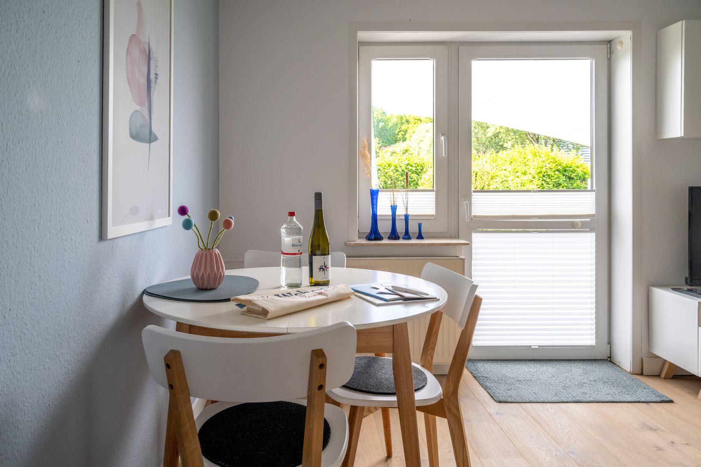 Die Ferienwohnung 4 im Haus Pusteblume verfügt über 2 Schlafzimmer und 1 Bad und bietet somit komfortabel Platz für bis zu 3 Personen zuzüglich einer Kleinkinderaufbettung. Auch bis zu 2 Hunde sind hier herzlich willkommen.